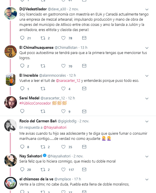 El Universal/ La Voz de Michoacán La diputada federal poblana, Nayeli Salvatori Bojalil, invitó a los ciudadanos a fumar marihuana a su casa cuando sea legalizada. A través de sus redes sociales pregunta “quién se apunta”, a fumar la marihuana, además de escuchar a un grupo de rock ingles. https://youtu.be/JskztPPSJwY “Cuando se legalice la marihuana están todos invitados a fumar a mi casa escuchando The Doors ¿Quien se apunta?”, escribió. https://twitter.com/Naysalvatori/status/1058056562818867200 La exlocutora de radio que compitió por el distrito X de Cholula, Puebla, se caracteriza por comentarios que generan polémica entre la sociedad. Su último escándalo fue cuando criticó a través de un video publicado en sus redes, a una mujer por amamantar a su bebé delante de su marido. Este 31 de octubre la Suprema Corte de Justicia de la Nación (SCJN) otorgó dos amparos y fijar jurisprudencia para que cualquier ciudadano que solicite un permiso al gobierno federal, pueda cultivar y consumir marihuana con fines recreativos.