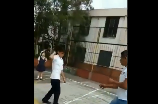 Redacción | La Voz de Michoacán En redes sociales se viralizó un video donde se puede observar como un alumno de primaria amenaza con agredir con un cuchillo a un profesor en un colegio en Bucaramanga, Colmbia. La educación no debe ser exclusiva del colegio, valores como el respeto deben empezar desde la casa. En este video #viral de #Bucaramanga se aprecia el momento en que un estudiante intentó agredir con cuchillo a un profesor del colegio Francisco de Paula Santander. pic.twitter.com/icyS1x9jfY — SebastiánFelipeGómez (@gomezsebastianf) August 28, 2019 En el video se observa al estudiante y maestro en el patio de plantel, lugar donde el menor toma un arma punzo cortante ye intenta herir al profesor que solo se dedica a esquivar los ataques. Todo esto mientras los compañeros del estudiante presencian la situación y gritan “Keiner no, Keiner cálmese, no lo haga”. "Ese video es cierto, es una situación desafortunada, el niño se fue para su casa, regresó al colegio con esta arma blanca, y ya , pasó lo que pasó se ve en el video, los docentes contactaron a Policía de infancia y adolescencia, se llevaron al estudiante, el menor no volvió al colegio, se intentó contactar a la mamá, no fue posible ubicarla, y este caso quedó en manos de Policía de infancia y adolescencia, fue detenido, lo absolvieron pero no ha vuelto a la institución educativa", dijo, Ana Jazmín Pardo, secretaria encargada de educación. La rectora de la institución declaró que el suceso no pasó a mayores, y que el estudiante es bastante “intolerante”; “el día de la riña el profesor lo regañó y lo hizo a un lado de la clase”.