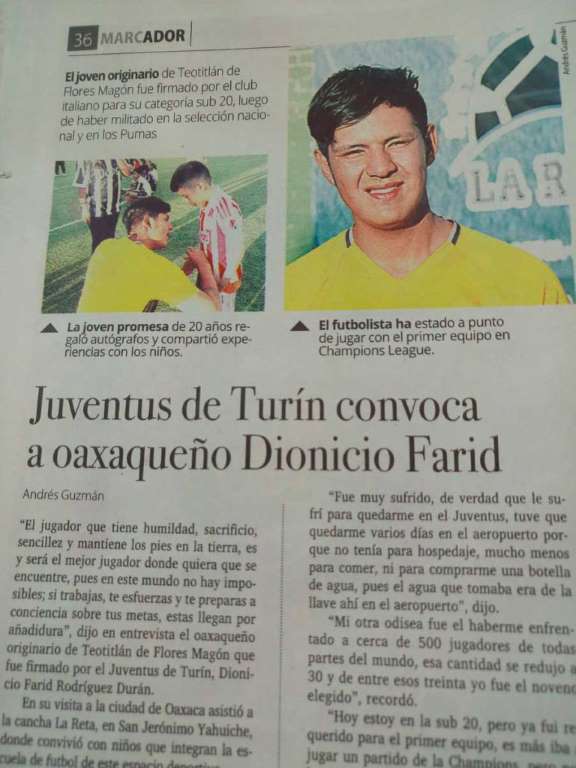 Ciudad de México. En redes sociales circula la historia de Dionicio Farid Rodríguez, originario de Teotitlán de Flores Magón, Oaxaca, quien fingió ser jugador de la Juventus para lucrar.