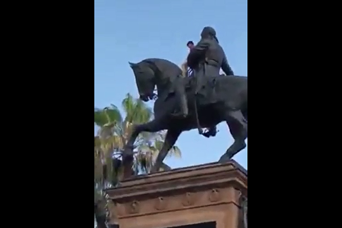 Un joven, de quien no se conocen sus datos, logró lo que muchos sólo han imaginado: montarse en la estatua ecuestre del Siervo de la Nación que se ubica en la Plaza Jardín Morelos. El video de inmediato se hizo viral.