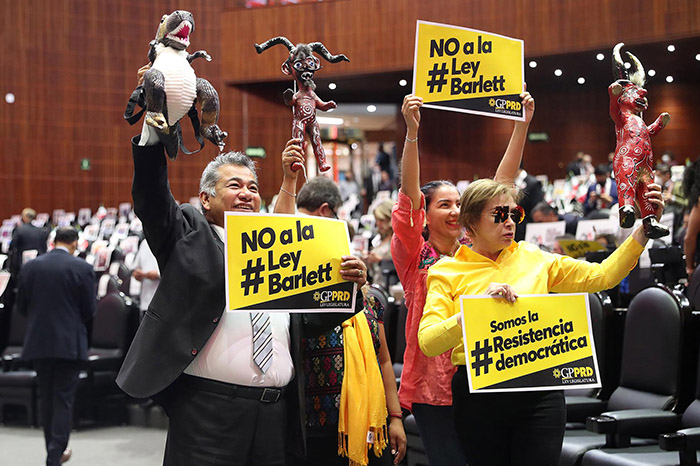 Redacción / La Voz de Michoacán Ciudad de México. Andrés Manuel López Obrador, presidente de México, reiteró este domingo que se apruebe o no su propuesta de reforma eléctrica, que debaten los diputados, su gobierno está “blindado contra la traición”. “Ya lo dije en mi informe del martes: pase lo que pase ya estamos blindados contra la traición. Mañana lo vuelvo a explicar”, expresó el mandatario en su cuenta oficial de Twitter mientras los legisladores continúan con la discusión de la iniciativa que se prolonga durante varias horas. López Obrador se refirió así a su otra iniciativa, la cual envió este domingo a la Cámara de Diputados en la que busca mantener en exclusividad del Estado la explotación del litio. Incluso, ante el probable escenario de que la reforma eléctrica no sea aprobada este domingo, la Junta de Coordinación Política de la Cámara de Diputados (Jucopo) acordó citar a una sesión mañana, lunes, para discutir y avalar la iniciativa del presidente mexicano sobre el litio. El pasado 13 de abril, López Obrador reveló que ya había firmado la iniciativa de reforma a la Ley Minera. https://twitter.com/lopezobrador_/status/1515871421796270082?s=20&t=dmmMslsFUK1c3MCn2Ejn8w Este domingo, diputados mexicanos mantienen un acalorado debate sobre la reforma energética propuesta por el presidente Andrés Manuel López Obrador en medio de gritos, insultos, retrasos y peticiones de la oposición a no votar la iniciativa. A las 11.00 hora local (16.00 GMT) los legisladores iniciaron el pleno, pero solo cuatro horas después comenzó el debate, luego de que diputados oficialistas pidieron a las diputadas Margarita Zavala (Partido Acción Nacional) y Edna Díaz (Partido de la Revolución Democrática) abstenerse de votar por presuntos conflictos de interés. Foto: EFE Tras ese receso, se inició la discusión entre gritos de “¡No pasará! ¡no pasará!” de los diputados opositores y de “¡Traidores! ¡Traidores!” por parte de los legisladores del oficialista Movimiento de Regeneración Nacional (Morena) y sus aliados. Moisés Alejandro Mier, diputado morenista, aseguró que de aprobarse la reforma eléctrica, habrá una transición a las energías limpias y recordó que los empresarios extranjeros contarán con el 46 % de su participación en la generación de electricidad, además de que se les dará certeza jurídica a sus inversiones. El diputado Jorge Romero Herrera explicó que sus colegas del PAN, PRI y PRD votarán en contra de la reforma eléctrica porque están a favor de las libertades económicas, de las energías limpias y de las tarifas bajas en favor de quienes más lo necesitan. En tanto, Alejandro Moreno, presidente del PRI, aseguró que la reforma eléctrica “no va a pasar” y Morena tendrá su derrota más grande. "A ustedes (diputados morenistas) les decimos, hoy tendrán la derrota más grande, no va a pasar su reforma", afirmó. Los legisladores debaten la aprobación de la reforma que, entre otras cosas, propone dar el control del sector energético a la empresa estatal Comisión Federal de Electricidad (CFE) y limitar al 46% la participación privada en generación eléctrica para favorecer a la CFE, acusada de tener algunas plantas contaminantes y obsoletas. https://twitter.com/jenarovillamil/status/1515882055846006784?s=20&t=dmmMslsFUK1c3MCn2Ejn8w https://twitter.com/jenarovillamil/status/1515877476341370890?s=20&t=dmmMslsFUK1c3MCn2Ejn8w https://twitter.com/jenarovillamil/status/1515873453236228096?s=20&t=dmmMslsFUK1c3MCn2Ejn8w