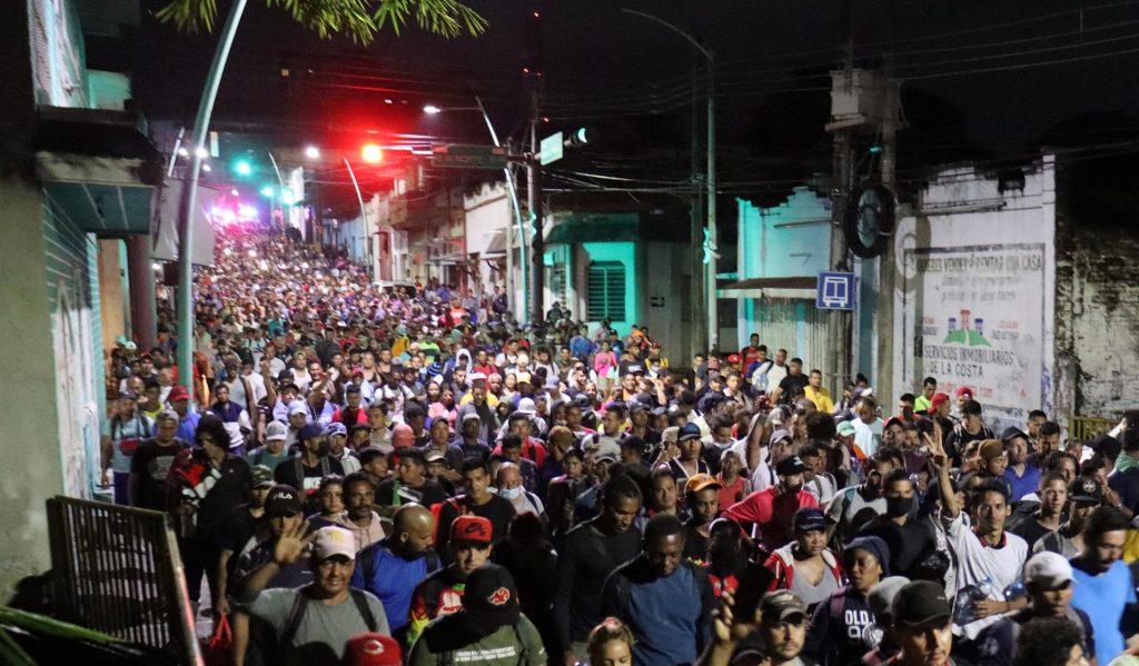 EFE / La Voz de Michoacán Tapachula. Una nueva caravana con cerca de 4.000 migrantes partió este viernes de la frontera sur de México hacia Estados Unidos con reclamos de seguridad y libre tránsito por el temor de sufrir una tragedia como la de los 53 migrantes que murieron por hacinamiento en un tráiler en Texas desde el lunes. Los migrantes, en su mayoría de Centroamérica y Venezuela, salieron en la madrugada desde Tapachula, limítrofe con Guatemala, con destino al municipio de Huixtla, donde solicitarán camiones y permisos temporales para transitar por territorio mexicano. Los viajeros exigen condiciones para evitar una tragedia como la que ocurrió hace unos días en la ciudad estadounidense de San Antonio, Texas, donde han fallecido 53 personas por asfixia y deshidratación, incluyendo 27 mexicanos, siete guatemaltecos y 14 hondureños, según el Gobierno de México. Foto: EFE El venezolano Daniel Veo denunció que caminar y subirse a un tráiler o a unidades particulares puede traer consecuencias fatales al escoger rutas que no son aconsejables porque en ocasiones sus compañeros migrantes han perdido la vida. Nosotros estamos pidiendo que se mantengan en grupos organizados porque estamos en un país que no es de nosotros y (pedimos) conservar el buen comportamiento para poder continuar con el destino, que es Estados Unidos", contó a Efe. EL MURO MEXICANO Esta es la décima caravana y la tercera más numerosa del año que sale de Tapachula, en busca de documentos para circular por territorio mexicano y llegar a Estados Unidos. Al igual que Estados Unidos, el Gobierno de México también ha afrontado críticas por el despliegue de casi 30.000 agentes de las Fuerzas Armadas en las fronteras norte y sur para tareas migratorias, lo que orilla a los migrantes a buscar rutas alternas. Para la caravana de este viernes, las autoridades mexicanas enviaron tres contingentes de la Guardia Nacional al retén ubicado en la comunidad de Viva México, donde ahora se limitaron a observar el transitar de la caravana, que celebraba con gritos de "Sí se pudo, sí se pudo"! Cansados, agotados, con hambre, sin agua, pero con la esperanza de llegar a la garita migratoria, donde podrán solicitar algún documento, los migrantes de esta caravana pasaron por el segundo retén migratorio de Huehuetán sin la molestia de ninguna autoridad migratoria o la Guardia Nacional. La venezolana Irma de Jesús Torre, quien llegó hace mes y medio a Tapachula, contó que tiene temor de transitar porque las autoridades del Instituto Nacional de Migración (INM) los detienen y encierran en la estación migratoria Siglo 21. "Nos enfrentamos a muchos obstáculos que nos pone Migración porque inseguridad hay en todas partes", denunció. Además, comentó que no se va subir a los tráileres porque tiene miedo y ella y su familia pueden sufrir algún accidente. La tragedia de Texas ha evocado recuerdos a la caravana sobre la volcadura de un camión con migrantes que dejó casi 60 muertos en diciembre pasado en Chiapas, cerca de la frontera con Guatemala. Los migrantes pretenden caminar este día un total de 52 kilómetros hasta la garita de migración ubicada en Huixtla, desde donde pretenden seguir su camino al norte del país los próximos días. En los puntos carreteros, elementos de la Guardia Nacional instalaron retenes para evitar que los migrantes viajen en triciclos, motocicletas y unidades del transporte público con el argumento de garantizar su seguridad. FLUJO MIGRATORIO RÉCORD La caravana refleja un flujo migratorio récord hacia Estados Unidos, cuya Oficina de Aduanas y Protección Fronteriza (CBP, en inglés) detectó a más de 1,7 millones de indocumentados en la frontera con México en el año fiscal 2021, que terminó el 30 de septiembre pasado. El Gobierno mexicano reportó un incremento del 89 % interanual en el número de migrantes presentados o canalizados por la autoridad migratoria en el primer trimestre de 2022, al sumar 77.626 de enero a marzo.