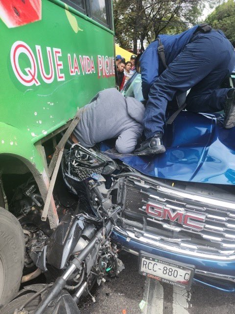 Redacción / La Voz de Michoacán Ciudad de México. Un presunto asaltante murió prensado entre una unidad de transporte público y una camioneta con la que fue impactado luego de que la víctima acelerara para evitar ser asaltada. Todo ocurrió alrededor de las 13:00 horas de este miércoles, en el cruce de Eje 5 Sur y la calzada de La Viga, colonia El Triunfo, alcaldía Iztapalapa. Según el parte oficial, la conductora esperaba la luz vede del semáforo cuando dos sujetos a bordo de una motocicleta se le emparejaron en su ventanilla. El individuo que manejaba la moto detuvo la marcha, de forma que el sujeto que iba de copiloto quedó a la altura de su objetivo; el sospechoso que iba atrás en la motocicleta sacó lo que parecía un arma de fuego y le exigió sus pertenencias a la víctima. “Dame todo lo que traigas, pendeja”, la amenazó el sospechoso. En ese momento la mujer hizo una maniobra (giró el volante a la izquierda) y aceleró, impactándose contra una unidad de transporte público, quedando así prensados la motocicleta y el sujeto que la conducía, mientras que su cómplice cayó al pavimento y pese a que estaba herido logró escapar corriendo, según informaron fuentes capitalinas. La Secretaría de Seguridad Ciudadana (SSC) de la Ciudad de México, detalló que paramédicos que atendieron la emergencia diagnosticaron al hombre sin signos vitales. En una tarjeta informativa, la institución detalló que la conductora de 22 años y Daniel "N", chofer de la unidad de transporte público, de 34 años, fueron presentados ante el agente del Ministerio Público para deslindar responsabilidades. Autoridades de la Ciudad de México señalaron que al término de los peritajes el cuerpo del delincuente fue trasladado al anfiteatro ministerial para realizarle la necropsia de ley y llevar a cabo su identificación. Además, los vehículos, la unidad de transporte público, la camioneta de la marca GMC color azul con placas RCC-880C y la motocicleta color negro con placas NZ200, también fueron trasladados a las instalaciones de la Fiscalía capitalina. Como parte de las diligencias realizadas en el lugar, las autoridades localizaron un arma tipo revolver y un celular en inmediaciones de los vehículos involucrados en el hecho. Las autoridades señalaron que ya realizan la revisión de las cámaras de videovigilancia y privadas de la zona, para ubicar al presunto delincuente que logró escapar.