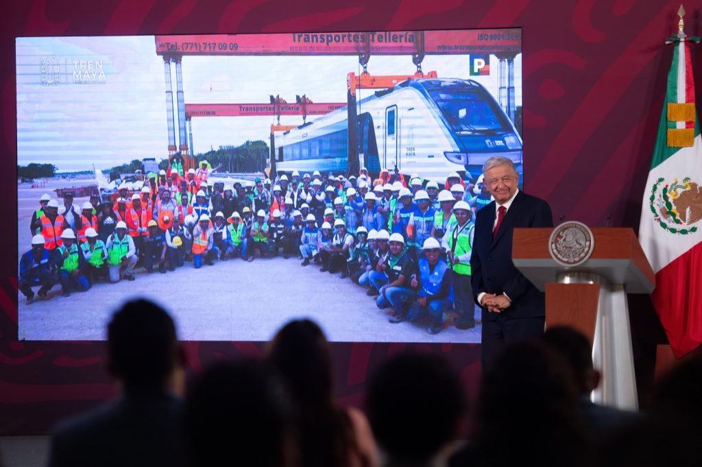 Redacción / La Voz de Michoacán Ciudad de México. Con el primer tren de cuatro vagones ya en el taller cochera de Cancún, “seguimos cumpliendo los compromisos. Ya hay Tren Maya y la transformación del sureste está en marcha”, aseveró el director general del Fondo Nacional de Fomento al Turismo (Fonatur), Javier May Rodríguez.El también responsable de la obra del Tren Maya informó, en la conferencia de prensa del presidente Andrés Manuel López Obrador, que concluyó el traslado del primer tren de Ciudad Sahagún, Hidalgo, a Cancún, Quintana Roo. Afirmó que como el propio Ejecutivo federal lo constató, “el primer vagón arribó al taller y cochera de Cancún la mañana del sábado 8 de julio. Los otros tres vagones llegaron el domingo. Se trata del primer tren tipo estándar, con capacidad para 230 pasajeros”. Explicó que, luego de su acoplamiento, iniciarán las pruebas estáticas y después las dinámicas, con rodamiento sobre la vía, entre Cancún y Mérida. “El traslado de este primer tren implicó siete días de viaje a lo largo de casi dos mil kilómetros, pasando por diez estados: Hidalgo, Tlaxcala, Puebla, Oaxaca, Veracruz, Tabasco, Chiapas, Campeche, Yucatán y Quintana Roo.” Detalló que, inicialmente hubo algunos contratiempos, sobre todo por lluvia, pero se retomó el ritmo y se completó el trayecto conforme a lo estimado. May Rodríguez expresó su agradecimiento al personal de Alstom; a la Secretaría de Infraestructura, Comunicaciones y Transportes (SICT); Caminos y Puentes Federales (Capufe), Guardia Nacional “y demás instituciones que hicieron posible el traslado del primer tren con todos los cuidados necesarios, sin que se registrara accidente alguno”. Reconoció y agradeció también “a la población, a los automovilistas, que al ver el convoy de día o de noche, tomaron las precauciones necesarias y contribuyeron al paso seguro de los vagones”. La directora de Alstom México, Maite Ramos Gómez, informó que el siguiente paso es la validación y puesta en marcha del tren con 42 pruebas estáticas y 24 pruebas dinámicas. Explicó que las verificaciones estáticas abarcan: sistema neumático, de control de puertas, de calefacción, ventilación, iluminación e información al pasajero, mientras que las dinámicas comprenden: ensayo de frenado, sistema de control del tren, calidad del confort durante la marcha y ensayos acústicos en vía recta, curvas y pendientes, en todas las condiciones que pudiera afrontar el tren en su operación.