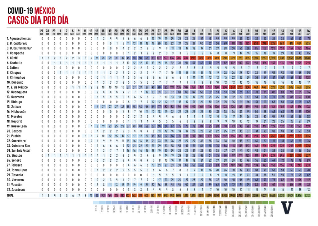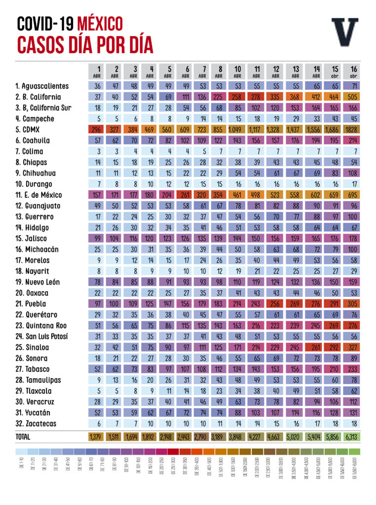 Ciudad de México. Hasta este jueves en México se registran 6 mil 297 casos confirmados del nuevo coronavirus SARS-CoV-2, que causa la enfermedad del COVID-19, así como 486 decesos, informó el doctor José Luis Alomía, director general de Epidemiología de la Secretaría de Salud (Ssa) federal.