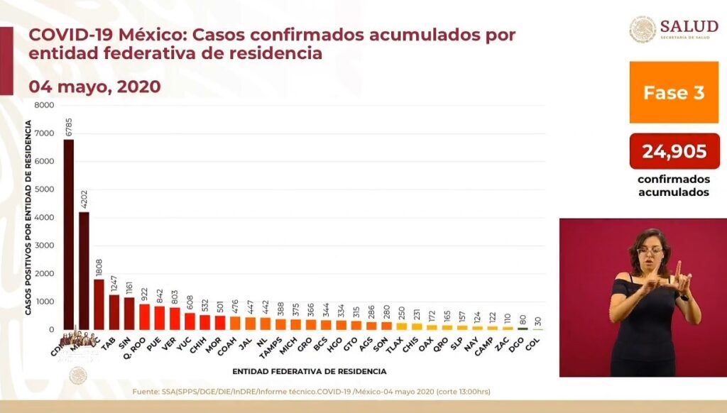 Coronavirus en México: suman 24,905 casos confirmados y 2,271 defunciones