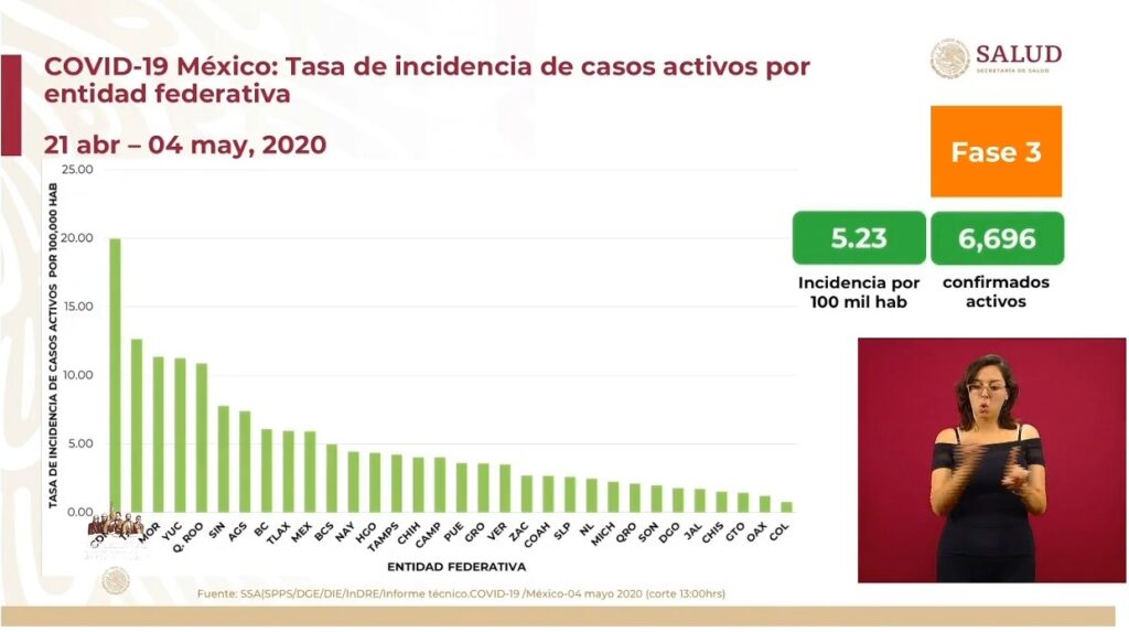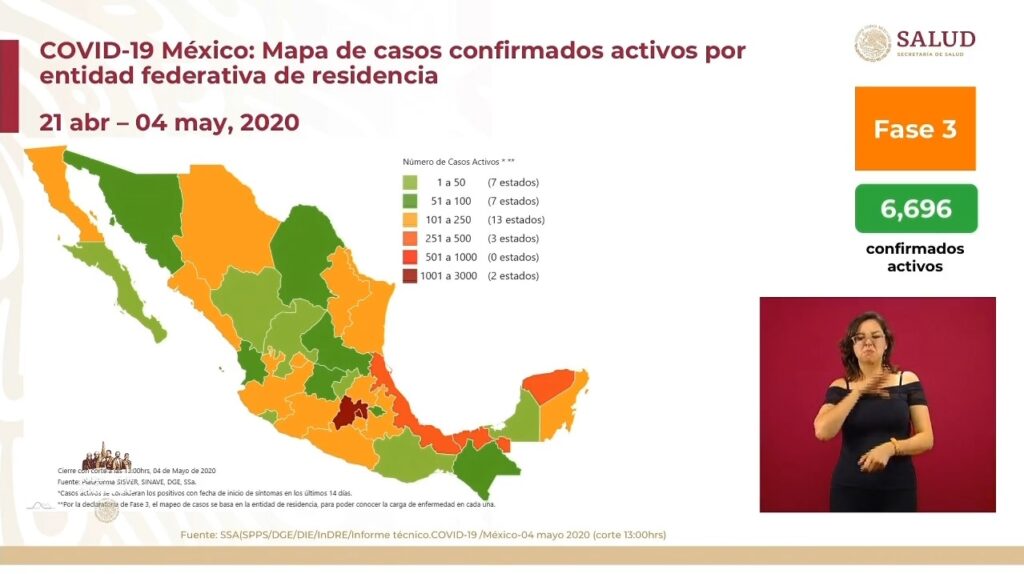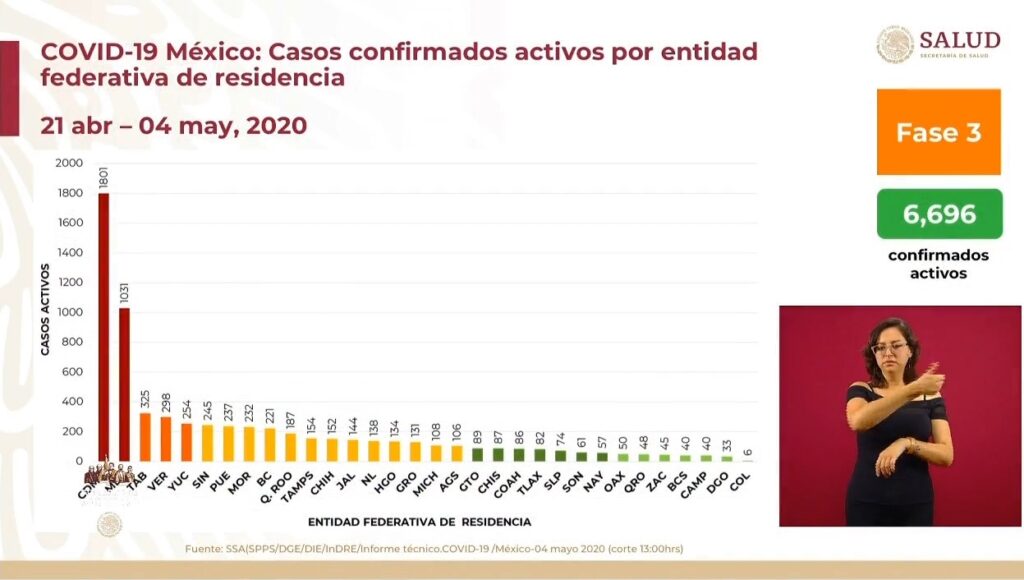 Con mil 434 casos confirmados de la enfermedad en las últimas 24 horas, México suma en total 24 mil 905 casos positivos acumulados, de los cuales solo 6 mil 696 tienen la enfermedad activa, es decir, presentaron inicio de síntomas en los últimos 14 días, de acuerdo con el reporte diario de la situación que guarda el país respecto a la enfermedad de COVID-19.