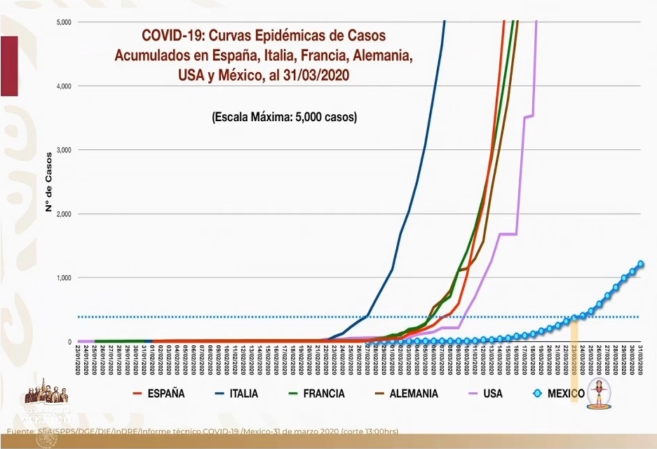 El primer caso positivo COVID-19 en Estados Unidos fue el 20 de enero, en España el 31; en Alemania el 27 y en Francia en 24. México registró su primer caso el 28 de febrero, un mes después, de acuerdo con los registros oficiales.