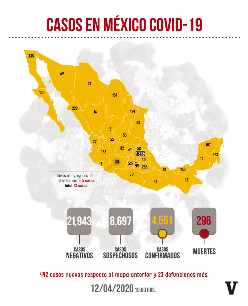 México llega a 4 mil 661 casos de COVID-19; hay 296 fallecidos