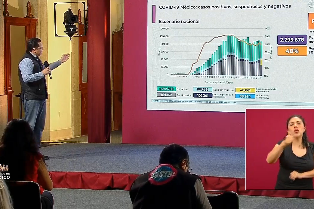 Juan Carlos Huante / La Voz de Michoacán Ciudad de México. Con 4 mil 360 nuevos casos confirmados de COVID-19, México acumula 891 mil 160 contagios; mientras que en decesos llegó a la cantidad de 88 mil 924, con 181 que se agregaron al reciente registro dado a conocer por la Secretaría de Salud (SSa) federal este domingo. Durante el informe diario, el doctor José Luis Alomía, director de Epidemiología de la SSa, a la fecha 2 millones 295 mil 678 personas fueron analizadas como sospechosas con la enfermedad provocada por SARS-CoV-2, de las cuales, 1 millón 72 mil 760 tuvieron un resultado negativo. El doctor Alomía que destacó que la semana 43 de la epidemia en México se iniciará con un descenso de -7% respecto a los casos estimados; sin embargo, advirtió que los ciudadanos regresan al espacio público, a las actividades sociales y sin ningún tipo de precaución, habrá de nuevo un incremento en contagios. Informó que a la fecha se han recuperado 650 mil 355 pacientes que contrajeron la enfermedad provocada por SARS-CoV-2. Luego de tres semanas consecutivas en una tendencia a la baja en cuanto a decesos, el funcionario de Salud evidenció que entre la semana 41 y 42 se registró un incremento, con una diferencia porcentual de +5%. De acuerdo con las cifras del reporte nacional, la cifra máxima de defunciones que se ha registrado en lo que lleva transcurrida la crisis sanitaria fue de 5 mil 292, y en la semana 42 ocurrieron 2 mil 308. Chihuahua fue la entidad que mayor índice de letalidad presentó durante la semana epidemiológica que concluye. Asimismo, se han notificado 392 defunciones sospechosas con posibilidad de resultado; 10 mil 441 sospechosas sin muestra, y 4 mil 125 sospechosas sin posibilidad de resultado. Respecto a la disponibilidad de camas de hospitalización general, existe una ocupación del 31% (8 mil 852) de un total de 28 mil 290;y son cuatro entidades las que registran una ocupación de más del 50%: Chihuahua (72%), Nuevo León (63%), Durango (60%) y Coahuila (54%). Mientras que en camas que cuentan con ventilador, la ocupación nacional es de 2 mil 627 de 10 mil 214. Chihuahua y Durango son las entidades que más porcentaje de espacios ocupados presentan con 61% y 57%, respectivamente.
