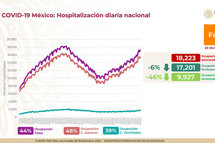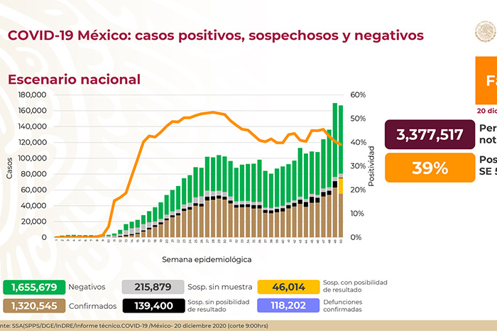 Ciudad de México. Al corte del 20 de diciembre y de la semana epidemiológica 50, México acumula un millón 320 mil 545 casos confirmados de COVID-19.