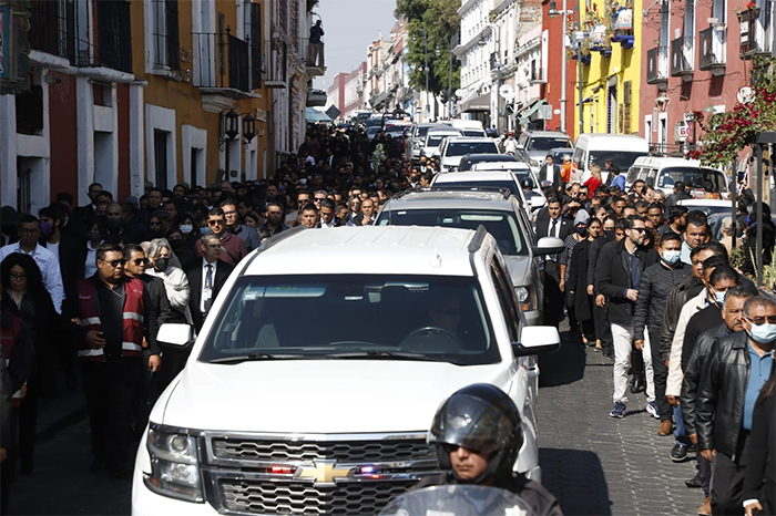 Redacción / La Voz de Michoacán Morelia, Michoacán. Debido al fallecimiento del gobernador de Puebla, Miguel Barbosa Hernández, este martes 13 de diciembre, el Gobierno del Estado decretó tres días de luto en territorio estatal, así lo publicó en el Periódico Oficial de la entidad. Asimismo, en señal de duelo, se izará la Bandera Nacional a media del 14 al 16 de diciembre; también se colocarán moños negros en dependencias y entidades de la administración pública estatal por todo lo que resta del mes. Foto: Redes sociales Gobierno de Puebla. Este miércoles, integrantes del Congreso local rindieron homenaje de cuerpo presente a Barbosa Hernández; posteriormente, en Palacio de Justicia, magistradas y magistrados también montaron guardia de honor. Posteriormente, el cortejo fúnebre recorrió algunas calles de la capital poblana, hasta llegar a Casa Aguayo, alrededor de las 11:20, donde fue recibido con mariachis. A este evento de reconocimiento asiste el presidente de la República, Andrés Manuel López Obrador. Foto: Redes sociales Gobierno de Puebla.
