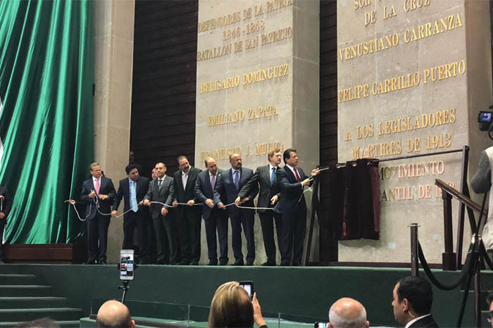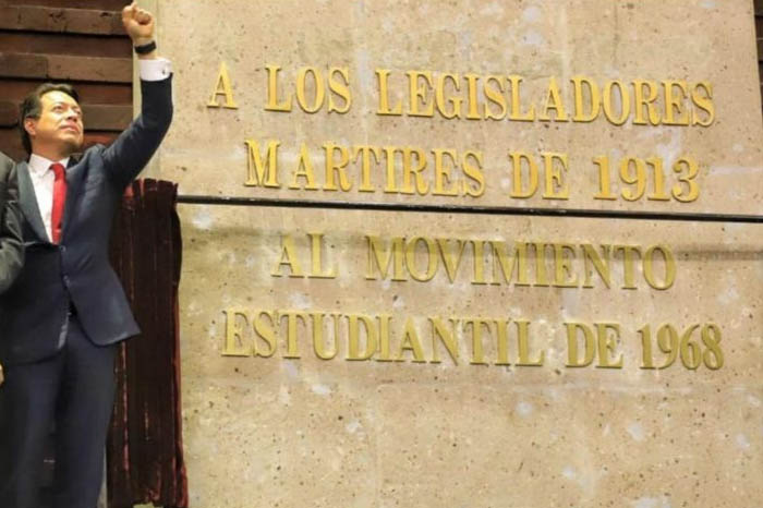El Universal / La Voz de Michoacán Ciudad de México. En la Cámara de Diputados se develó la inscripción Al Movimiento Estudiantil de 1968 en el Muro de Honor del salón de sesiones, frente a una asamblea a reventar y con gritos como el "¡Goya!" y "¡2 de octubre no se olvida!". La mañana de hoy martes, los coordinadores parlamentarios de San Lázaro, encabezados por el presidente de la Junta de Coordinación Política, Mario Delgado Carrillo, retiraron la cortina de terciopelo que tapaba a las letras entre el aplauso de los asistentes. Luego del acto, los diputados del Movimiento Regeneración Nacional (Morena) realizaron un conteo por los 43 normalistas desaparecidos de Iguala, Guerrero, en 2014; y reclamaron justicia. Así develaron con letras de oro la frase: “Al movimiento Estudiantil de 1968” en el muro de Honor del Congreso #2deOctubre #Tlatelolco pic.twitter.com/gTJ5JiQyiz — Ruido en la Red (@RuidoEnLaRed) 2 de octubre de 2018 Inició los discursos de Félix Hernández Gamudi, representante del Comité 68; y posteriormente el rector de la Universidad Nacional Autónoma de México (UNAM), Enrique Graue Wiechers, y el director del Instituto Politécnico Nacional (IPN), Mario Alberto Rodríguez Casas.