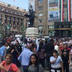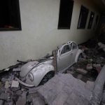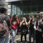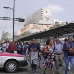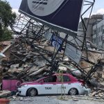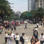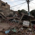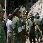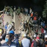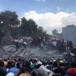Foto: Twitter. Presidencia de la República. personas levantando los puños indicando silencio para buscar a más personas.