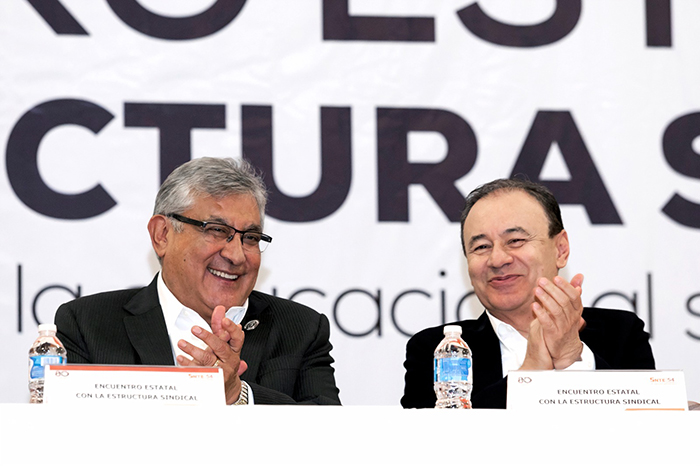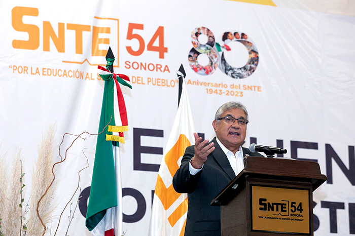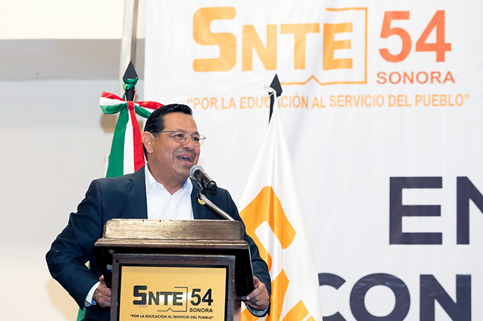 Redacción / La Voz de Michoacán Hermosillo, Sonora. El secretario general del Sindicato Nacional de Trabajadores de la Educación (SNTE), Alfonso Cepeda Salas, realizó una gira de trabajo en el estado de Sonora, en la que se reunió con el gobernador de la entidad, Alfonso Durazo Montaño, e integrantes de las secciones 28 y 54. El maestro Cepeda Salas y el gobernador Durazo Montaño fueron testigos de honor de la firma de una convocatoria, entre el SNTE y la Secretaría de Educación y Cultura del estado, para dotar de equipo de cómputo a docentes de Educación Básica. Ante mil 200 agremiados de la Sección 54, el dirigente nacional enfatizó “que ninguna tecnología puede sustituir al maestro”; sin embargo, ésta es importante para hacer más eficiente su trabajo y estar acorde con las necesidades de las nuevas generaciones de estudiantes. Proporcionar a los profesores las herramientas necesarias para el desempeño de su labor es, dijo, un logro alcanzado gracias a la gestión del Sindicato y la voluntad de los gobiernos. Reiteró que el SNTE mantendrá su lucha, como desde hace 80 años, por la educación pública y mejores condiciones laborales, ya que si bien durante los cinco años que lleva de administración el Presidente Andrés Manuel López Obrador se han logrado grandes avances para los trabajadores de la educación, como la basificación de casi un millón de agremiados e incrementos por arriba de la inflación, hay demandas pendientes, entre ellas el despegue salarial para profesores, de acuerdo con su formación y sus responsabilidades, eliminar la USICAMM, así como obtener pensiones dignas para los compañeros que se jubilen. Además, el maestro Alfonso Cepeda reconoció al mandatario estatal por su visión y compromiso con la educación pública y los docentes que la hacen posible. En su intervención, el gobernador Alfonso Durazo Montaño expresó su respeto y reconocimiento al liderazgo del secretario general del SNTE, por haber consolidado la unidad de la organización, la cual, dijo, se ha caracterizado por su “institucionalidad y por eso ha sido más eficaz en la lucha por la defensa de los derechos de las y los trabajadores de la educación”. Remarcó el compromiso de su gobierno por atender las demandas de los docentes sonorenses y se refirió al incremento presupuestal para el Instituto de Seguridad y Servicios Sociales de los Trabajadores del Estado de Sonora (ISSSTESON), que ayudará a eficientar el servicio para los maestros, principalmente de los jubilados; así como las 5 mil 143 basificaciones entregadas. También, anunció mayores recursos para otorgar de becas a estudiantes, a fin de que ninguno se quede sin recibir un apoyo. Previamente, el secretario general del SNTE inauguró el edificio recién remodelado de la Sección 28, cuyas instalaciones permitirán contar con un espacio digno de los trabajadores de la educación. En las diversas reuniones acompañaron al maestro Cepeda Salas los secretarios generales de las secciones 28 y 54, César Adalberto Salazar López y Jesús Javier Ceballos Corral, respectivamente, quienes manifestaron su total respaldo al dirigente nacional, en la demanda para derogar la Ley General del Sistema para la Carrera de las Maestras y los Maestros, la desaparición de la USICAMM y mejorar las pensiones para los compañeros que se jubilen. También estuvieron los representantes del Comité Ejecutivo Nacional del SNTE ante las secciones 28 y 54, Crecenciano Espericueta Rodríguez y Rogelio Rodríguez Rangel, respectivamente.