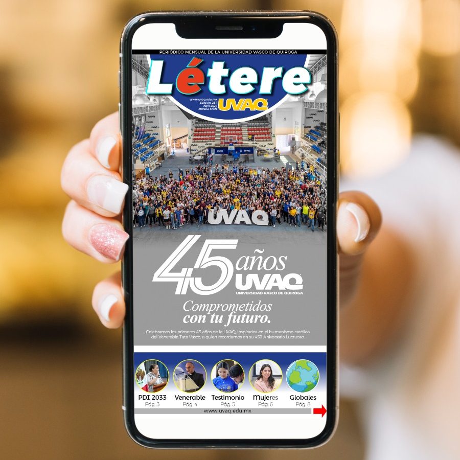 Redacción / La Voz de Michoacán Morelia, Michoacán. - Con el lema “Comprometidos con tu futuro”, los integrantes de la Universidad Vasco de Quiroga (UVAQ) celebran los primeros 45 años de servicio a la sociedad, inspirados en el humanismo católico del Venerable Tata Vasco, a quien se recuerda con múltiples actividades. En esta nueva edición del periódico digital de la UVAQ, Létere, se presenta una recopilación de las múltiples actividades en diferentes sedes, para celebrar los primeros 45 años de nuestra casa de estudios y también el 459 Aniversario Luctuoso de Tata Vasco, primer obispo de Michoacán. Además, se reflexiona sobre el protagonismo de la mujer en diferentes esferas sociales, el valor de la innovación, el manejo del estrés, las responsabilidades como ciudadanos y muchos otros temas de interés para toda la sociedad. Busca el Létere en la página oficial de la UVAQ, así como en las diferentes plataformas de la Universidad, en las que podrás observar galerías, escuchar las notas de radio y las cápsulas audiovisuales. Interactivo: https://indd.adobe.com/.../6c117327-3ff4-457c-a0dd... Hojéalo: https://issuu.com/fundacionedito.../docs/257_le_tere_ab24... Descárgalo: https://drive.google.com/.../1Ns3T4xS7KlS2bhxc2jz.../view... Más ediciones: https://www.uvaq.edu.mx/letere/