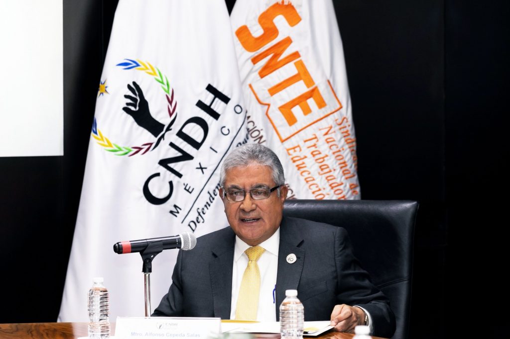 “Nos es muy grato tener la oportunidad de ampliar las acciones de colaboración en la promoción, defensa y construcción de una Cultura de Paz y respeto de los derechos humanos con una de las instituciones más importantes y de mayor relevancia en nuestro país, como lo es el Sindicato Nacional de Trabajadores de la Educación, SNTE, a través de proyectos y programas de capacitación, difusión y formación en materia de derechos humanos, que proporcionen y fortalezcan entre sus integrantes un mayor conocimiento y herramientas para la defensa de los derechos fundamentales de las personas y así transmitirlos a toda la sociedad”.