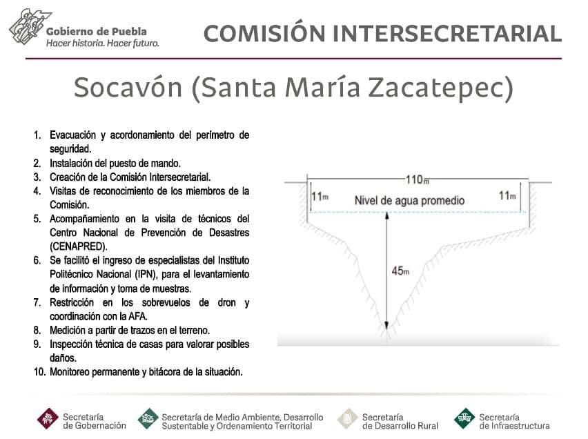 Redacción / La Voz de Michoacán Puebla. Para los campesinos que tienen sus tierras de labor junto al área afectada por el surgimiento del socavón, todos los días surge la duda y el temor de qué pasará con sus cultivos y sus viviendas. Miguel Flores y su esposa Ofelia Romero, desde lejos solo observan el cerco de seguridad que han montado las autoridades para evitar poner en riesgo a la población, pero viven en la zozobra de qué es lo que pasará con sus tierras. En entrevista con El Universal, la señora Ofelia refiere que por las noches continúan escuchando que la tierra “truena” y tiene miedo que el socavón siga creciendo a tal grado que alcance su campo. Su casa está asentada cerca del río Metlapanapa y hasta ahora las autoridades no les han dicho nada, pero ella teme que el hundimiento se haga más grande, se desborde y llegue hasta el río, entonces no solo afectará a sus cultivos, sino también a su casa. “Sí nos da miedo (el socavón), porque vemos que se está abriendo más, nos da miedo que se vaya a reventar y desbocar en el río y nuestra casa está junto al río; pero nuestra agua está clara y no tiene olor a nada”, comentó. Como ha pasado desde el primer día que apareció este hundimiento, ella acude al sitio diario para observar qué tan grande se va haciendo. En ese mismo lugar se ha instalado un campamento de la organización Pueblos Unidos, formado por habitantes de Santa María Zacatepec que exigen el retiro de la planta de agua Bonafont, a la que hacen responsable de la sobreexplotación del recurso. En ese sentido, la señora Ofelia reconoce el trabajo de los manifestantes, pues asegura que cada año, durante esta temporada de calor, baja el nivel del agua de los pozos artesanales que tiene cada familia, pero a raíz de que la empresa dejó de laborar por el plantón de pobladores instalado en sus puertas, cuentan con más del líquido. Como ejemplo citó que obtenía uno o dos botes de agua al día de su pozo, pero desde que cerró Bonafont ya obtiene más agua, la cual dijo es muy clara. https://twitter.com/ffloresm/status/1403871905522798593 Durante la entrevista, su esposo Miguel Flores se ha quedado con los brazos cruzados y por su mente solo hace cuentas de lo que ahora tendrá que gastar para tratar de salvar algo del campo, pero primero quiere saber si tendrá permiso de ingresar, ya que son 20 metros por 150 lineales los que cultiva, a tan sólo 400 metros de distancia del socavón. Por ser terrenos de cultivo de temporal, dijo que esperaban las primeras lluvias para iniciar la siembra, principalmente de maíz, pero con el cerco de seguridad, las autoridades ya no le dejaron pasar. Ahora espera poder sembrar cebada, para lo cual gastará más de cinco mil pesos, y que ese cereal sirva como alimento para la engorda de sus animales, solo así poder hacerse de un ingreso. Al respecto, Luis Aguas Méndez, comisariado ejidal de Santa María Zacatepec, en el municipio de Juan C. Bonilla, dijo representar a 13 familias afectadas por la pérdida de sus cultivos con la aparición del socavón. En la primera reunión que tuvieron con el gobernador Miguel Barbosa Huerta, mencionó que fue la familia Sánchez Xalamihua la primera en intervenir. El gobernador -dijo- le ordenó al presidente municipal encontrar un predio para reubicar a la familia, y una vez que esté listo, será la Secretaría de Desarrollo Social la responsable de otorgar los materiales para construir la vivienda, aunque se desconoce si será igual al valor de la vivienda afectada. “La visita del señor gobernador da confianza y es un aliciente para el gremio ejidal y para toda la ciudadanía. Estaremos en contacto con las secretarías que ya nos mencionó y les hizo la encomienda para que nos atiendan”, dijo aun portando un folder con una serie de documentos.
