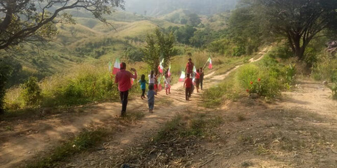 Notimex / La Voz de Michoacán Villa de Corzo, Chis. Con banderas y en un camino de terracería un maestro de la ranchería El Desengaño, del municipio de Villa Corzo organizó un desfile conmemorativo del 20 de Noviembre con sus alumnos de preescolar. A través de redes sociales se difundieron dos fotografías donde se observa a un reducido grupo de niños que porta banderas de México y desfila sobre un sendero de tierra, en el marco del aniversario del inicio de la Revolución de Mexicana. Sin mayores recursos los menores desfilaron en su comunidad y las acciones del maestros, quien se desconoce su identidad, fueron celebradas por los usuarios de internet como símbolo de la vocación docente. "Muchísimas felicidades y mis respetos para ese gran maestro, que aunque los niños muy humildes lo que cuenta es la enseñanza y los valores que les inculca a cada uno...mis respetos en verdad", escribió la usuaria Marina Martínez. Aunque no fue el único caso, ya que en Huixtla, Chiapas, la Escuela Multigrado en el Ejido Morelos también desfiló en una brecha.