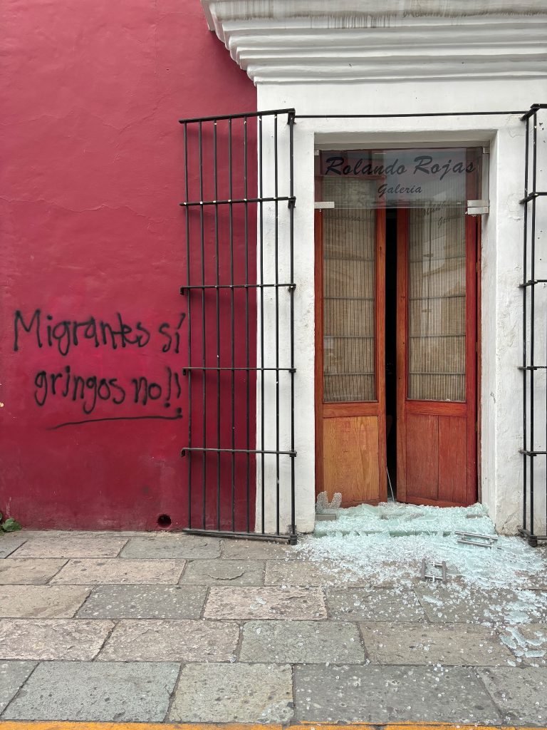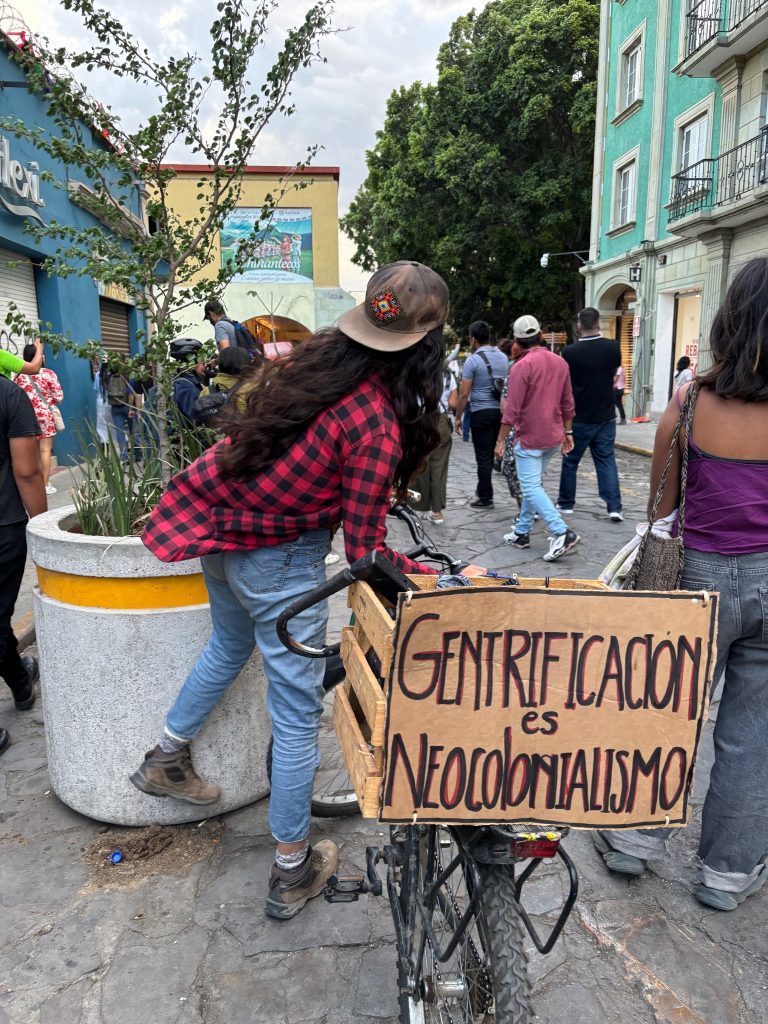Abril García / La Voz de Michoacán Oaxaca, Oaxaca. Este fin de semana se realizó una manifestación en el Centro Histórico de Oaxaca donde reclamaron a los empresarios, a las autoridades y a los extranjeros el despojo de los recursos naturales y el incremento en el costo de las viviendas a través del proceso de gentrificación. Los activistas denunciaron que Oaxaca se ha convertido en un Disneylandia, sirviendo a los intereses de la industria del turismo, especialmente por parte de personas extranjeras. Este fenómeno ha ocasionado diversos problemas para la población originaria de la zona durante varios años, entre los cuales destacan la precarización laboral, la falta de acceso al agua y el plagio de los textiles tradicionales. Con consignas como “Oaxaca no es hotel, fuera extranjeros de él”, los habitantes de este estado se manifestaron para exigir a las autoridades que implementen regulaciones a la actividad turística y al sector empresarial que lucra con los recursos naturales, las expresiones culturales y la mano de obra de las comunidades oaxaqueñas. Foto: Juan Elman Foto: Juan Elman Foto: Juan Elman Ante la protesta iniciada en Cruz de Piedra del Barrio de Xochimilco, la Secretaría de Seguridad y Protección Ciudadana (SSPC) detuvo a seis participantes por su presunta participación en los destrozos ocasionados en la zona, entre ellos la ruptura de los cristales de los negocios. Hasta el momento, se exige la liberación de los cuatro defensores de derechos humanos: Filadelfo Aldaz Deciderio, Sergio Andrés Céspedes Fernández, Ricardo Martínez Contreras y Antonio Díaz Miramón.