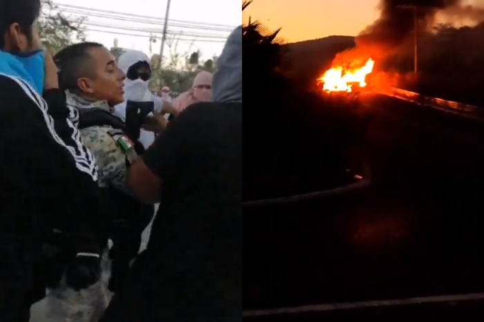 Tras el sepelio del estudiante Yanqui Rothan Gómez asesinado por la policía, normalistas de Ayotzinapa retuvieron en Tixtla en el estado de Guerrero a 10 elementos de la Guardia Nacional e incendiaron dos patrullas la noche de este sábado.