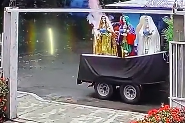 Redacción / La Voz de Michoacán Catemaco, Veracruz. La tarde de ayer lunes se registró una explosión con pirotecnia durante una celebración para la Santa Muerte en el municipio de Catemaco, Veracruz, dejando dos lesionados, uno de ellos con la amputación de parte de una pierna. Una cámara de seguridad captó el momento en el que un grupo de brujos va transportando varias imágenes de la Santa Muerte en una camioneta sobre un remolque. En segundos se puede ver que detrás de una de las figuras de más de dos metros comienza a salir humo. Al lado de la camioneta circula un taxi con pasajeros, mientras que a poco menos de un metro va una persona a bordo de una cuatrimoto. Segundos después de que comienza a salir humo se puede registra la explosión que hace cimbrar los automóviles y las casas cercanas, mientras que la camioneta queda envuelta en una nube de humo. Más adelante se puede observar a un joven que intenta ponerse de pie mientras sus piernas se encuentran llenas de sangre. Según medios locales, él sería el lesionado que resultó con la amputación de una parte de su pierna. Elementos de Protección Civil municipal, Guardia Nacional y Policía Municipal brindaron atención a los lesionados y aseguraron la zona para realizar las investigaciones correspondientes.