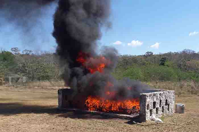 En Tapachula, Chiapas, el acto de incineración de 644 kilos 27 gramos 900 miligramos de cocaína, se llevó a cabo en las instalaciones del 14/a Zona Naval de la Secretaría de Marina Armada de México.