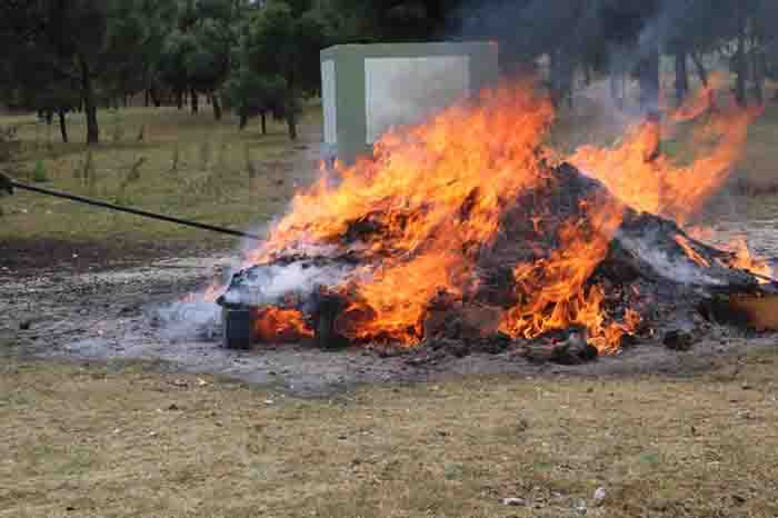 En todos los eventos de destrucción e incineración se contó con la asistencia de autoridades militares, así como del Órgano Interno de Control de la FGR, que supervisó que el proceso se llevara a cabo en términos de la normatividad aplicable en la materia.