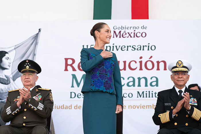Ciudad de México. Al encabezar el Desfile Cívico Militar Conmemorativo del 115 Aniversario de la Revolución Mexicana, la Presidenta Claudia Sheinbaum Pardo resaltó que la Cuarta Transformación está fuerte porque hay honestidad, resultados y amor al pueblo, por ello, puntualizó que quienes convocan a la violencia y a la intervención extranjera se equivocan, ya que el pueblo dice nunca más al racismo, al clasismo y a la discriminación, porque México avanza por la senda de la honestidad, de la paz, de la democracia y de la justicia.