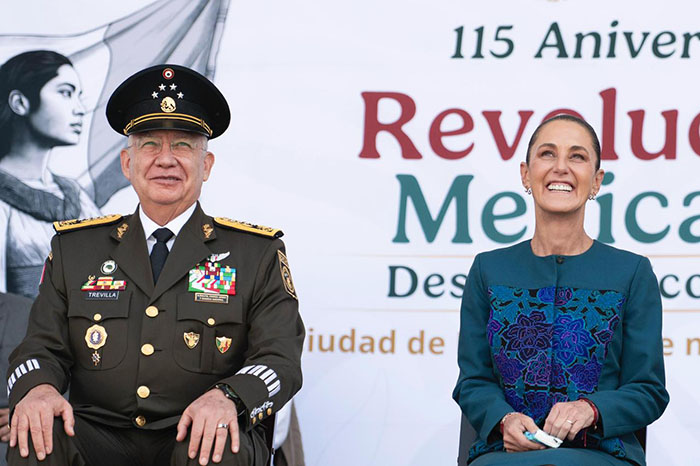 El secretario de la Defensa Nacional, general Ricardo Trevilla Trejo, reiteró el compromiso de las Fuerzas Armadas de México de seguir sirviendo a la patria y al pueblo. Además, destacó que la Revolución Mexicana no solo es el origen del Ejército Mexicano, sino que es también, la base de la historia del país, de la identidad y pilar de la mexicanidad.