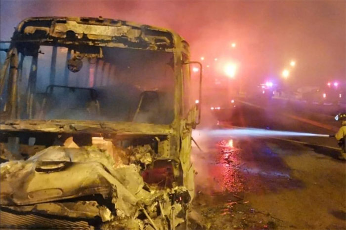 Redacción / La Voz de Michoacán Sonora. La noche de este jueves, el terror cimbró a los habitantes de Empalme Sonora, que entre balaceras y quemas de negocios y vehículos, fueron testigos de intensos enfrentamientos en algunas zonas de la ciudad. La magnitud de la violencia que se desató desde el pasado miércoles, y no sólo en Empalme, también en Caborca y Nogales, fue evidenciada en videos que circularon en redes sociales. En una de las videograbaciones, una mujer captó el momento en que se registra la explosión de un camión de pasajeros que ardía en llamas, mientras se escucha la desesperación de quienes la acompañaban. También se muestra la rapiña dentro de un OXXO en el que había fuego en su interior. En otro video se escucha el violento intercambio de balas entre la oscuridad de la noche; alguno de los que graban pide a la población que no salga de sus casas. https://twitter.com/flaquitoblue/status/1387686564042612740?s=20 https://twitter.com/MeganoticiasCOB/status/1387813121486692353?s=20 https://twitter.com/flaquitoblue/status/1387686564042612740?s=20 Por el hecho violento registrado en Empalme, de acuerdo con la Secretaría de Seguridad Pública de Sonora, fueron detenidos cuatro hombres, tras un operativo coordinado con la Sedena, Marina y Guardia Nacional. A los detenidos les aseguraron armas de fuego, cartuchos útiles y estrellas ponchallantas. https://twitter.com/ssp_sonora/status/1387964007450124292?s=20 Foto: Twitter. Foto: Twitter.