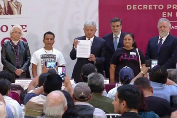 Salvador Rodríguez/ La Voz de Michoacán Ciudad de México. Andrés Manuel López Obrador, presidente de México, firmó el decreto para crear la comisión investigadora del caso Ayotzinapa. El #GobiernoDeMéxico firma Decreto Presidencial para Comisión de la Verdad en el Caso Ayotzinapa. https://t.co/xkX4sPWU2J — Com. Social del Gobierno de México (@ComGobiernoMx) 3 de diciembre de 2018 De acuerdo con Olga Sánchez, secretaria de Gobernación, el objetivo es conocer la verdad, reparar las violaciones y hacer justicia. Y no sólo representantes del Gobierno estarán en la comisión, sino que estuvieron presentes los padres; técnicos y un equipo de trabajo autónomo. Desde temprana hora y con la esperanza de inaugurar una nueva etapa en la investigación del Caso Iguala, los padres de los 43 normalistas arribaron a Palacio Nacional para reunirse con el presidente Andrés Manuel López Obrador. ? Los padres de los 43 estudiantes desaparecidos de #Ayotzinapa acuden a Palacio Nacional a la presentación del Decreto Presidencial para crear una Comisión de la Verdad para investigar el caso. pic.twitter.com/GZi5284g0S — Once Noticias ?? (@OnceNoticiasTV) 3 de diciembre de 2018 Sosteniendo carteles con los rostros de los 43 normalistas que desaparecieron el 26 de septiembre de 2014, los padres entraron uno a uno al salón, sin emitir declaraciones. Vidulfo Rosales, abogado de los padres, dijo que las expectativas en este momento son "que inauguremos una nueva etapa de las investigaciones".