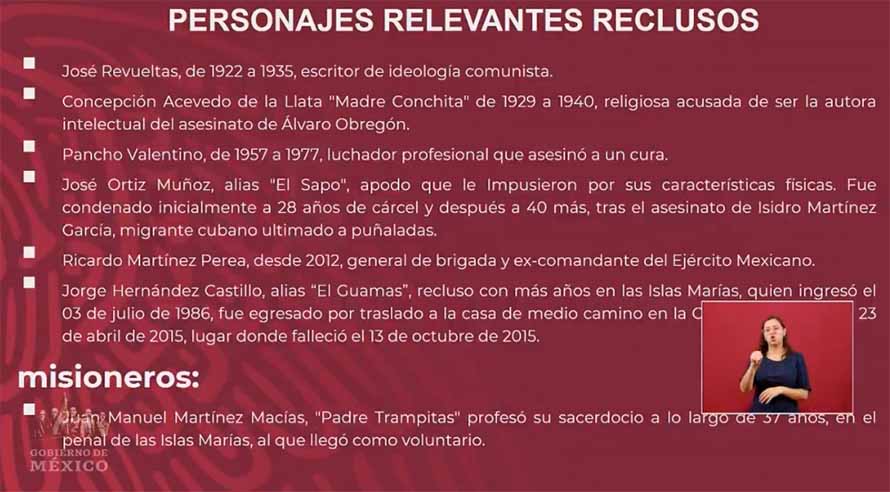 Redacción / La Voz de Michoacán Ciudad de México. Las Islas Marías se convertirán en un centro para las artes, la cultura y el conocimiento sobre el medio ambiente, anunció el presidente Andrés Manuel López Obrador. Durante su conferencia de prensa, el mandatario informó que los presos y trabajadores serán reubicados a centros penitenciarios cercanos, siendo 600 de baja peligrosidad; asimismo, 200 personas serán liberadas "porque ya cumplen con lo que establece la ley". López Obrador recordó que el último motín se presentó en el 2003 porque se sobrepobló la isla con 8 mil reclusos. En 1905 por decreto de Porfirio Díaz las Islas Marías se destinaron al ser una colonia Penal y en la 4T se decide por decreto de López Obrador se cierre y se reubique a los presos", Francisco Garduño, dir. del Sistema Penitenciario. Las Islas Marías conocidas como la Isla Madre que es la que cuenta con mayor superficie, las islas María Magdalena, María Cleofas y el islote de San Juanito son cuatro islas que se ubican en el Océano Pacífico, estas se encuentran a la altura de San Blas, en el estado de Nayarit. Islas Marías, el Alcatraz mexicano Esa prisión fue fundada en 1905 para albergar prisioneros peligrosos, y siguiendo el modelo de otras cárceles alejadas de la civilización, como Alcatraz en San Francisco, Estados Unidos, o el Penal de Ushuaia en la Tierra del Fuego, Argentina. Los presos gozan de ciertas libertades dentro de la isla, y son custodiados solo por 49 guardias y 80 elementos de la Marina Mexicana. El verdadero control lo ejercen los 100 kilómetros de mar que separan a María Madre de la costa y los tiburones. Para ser enviado como "colono" a las Islas Marías se debía acreditar una condena mínima de dos años, ser de baja peligrosidad, estar sano física y mentalmente, tener entre 20 y 50 años y poseer bajos ingresos.