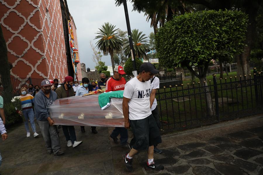 EFE / La Voz de Michoacán México. Hay un México que no renuncia a sus tradiciones a pesar de la pandemia. Es el México de Juan, quien murió de COVID-19 y sus familiares lo despidieron como siempre han hecho: velaron el cuerpo en casa, pasearon el féretro por el pueblo y lo enterraron con sus propias manos. La Alcaldía de Tláhuac, en el sureste de Ciudad de México, abarca seis antiguos pueblos donde las costumbres siguen marcando el día a día de sus habitantes y las disposiciones oficiales establecidas por la crisis sanitaria poco pueden hacer para alterarlas. Aunque el cementerio San Pedro de Tláhuac lleva meses cerrado al público, en su interior se siguen haciendo fastuosos sepelios. Y es que México tiene una peculiar y sincrética relación con la muerte, hasta el punto que los funerales se convierten en una fiesta de música, tequila y llantos. Desenterrar a la abuela para enterrar al tío A media mañana, Demetrio llegó a este panteón repleto de lápidas trazadas de forma irregular. Sus ojos rojos y ebrios andares revelaban que no había sido una noche fácil. Su hermano Juan había fallecido esa madrugada. Aunque el funeral estaba programado para la tarde, había mucho trabajo que hacer antes. "Todos los panteones de la Alcaldía son panteones vecinales. (...) La mayoría de servicios son realizados por los mismos familiares. Si alguien fallece, se ponen de acuerdo para raspar la tumba donde será sepultado el cadáver", contó este lunes a Efe Daniel de la Cruz, jefe de panteones de Tláhuac, donde se han triplicado los entierros por la pandemia. Foto: EFE. Tras la llegada de Demetrio, fueron llegando todos los hombres de la familia, la mayoría sobrinos del difunto, para dejar lista la fosa familiar donde enterrarían horas más tarde a Juan, quien falleció a los 52 años. Una decena de sobrinos rasparon la tumba de la abuela, un arduo trabajo de unas cuatro horas que consiste en levantar la lápida, desenterrar el féretro, meter los restos de huesos y ropa en una bolsa de plástico y dejar espacio para Juan, el nuevo difunto. "Cuando hay solvencia pagas para que lo haga un trabajador del panteón, pero aquí lo sabemos hacer y todos los trabajos los hacemos nosotros", contó Javier, uno de los primos que paró un momento de cavar para servir cerveza a todos sus parientes. "Es para convivir", añadió mientras la cumbia resonaba a través de un altavoz que llevaron al cementerio, donde botellas de cerveza y tequila acompañan a las ofrendas florales en algunas lápidas. El tío Juan falleció sin dejar hijos, pero sus sobrinos lo querían como un padre y ya estaban planeando una gran fiesta para su cumpleaños en enero. Velar un féretro plastificado Mientras los hombres raspaban la tumba entre cervezas, los lloros de la esposa, la hermana y otras mujeres de la familia resonaban en la casa de Juan, no muy lejos del panteón. Las autoridades mexicanas han pedido no velar a los fallecidos por coronavirus, una enfermedad que ha situado a México como el tercer país con más fallecidos del mundo, pero saltarse las exequias es algo impensable para muchas familias de Tláhuac, acostumbradas a convivir con el cadáver durante varias horas. Por eso, las puertas de la casa estaban abiertas de par en par a fin de que vecinos y amigos pasaran unos últimos instantes con Juan, cuyo féretro yacía encima de un altar en el patio del domicilio. Foto: EFE. La crisis sanitaria solo se dejaba entrever por un detalle, además de los cubrebocas: el ataúd había sido recubierto de plástico en el hospital como dicta el protocolo sanitario por la pandemia para evitar que los allegados lo abran La familia cumplió, aunque la incredulidad viaja a la misma velocidad que el virus en muchas zonas del país. "Mi tío no quería ir al hospital porque allí vas a lo que vas. Dijeron que tenía COVID pero nadie nos enseñó un papel que lo demuestre", explicó Javier con resignación. El camino a la inversa A las 3.30 de la tarde, los hermanos y primos del difunto regresaron al domicilio. La tumba ya estaba lista y podía comenzar el festejo. Junto a una banda musical de estridentes trompetas y tambores, colocaron el ataúd en una carroza fúnebre con la parte trasera abierta, que fue seguida por una cuarentena de personas durante un recorrido de una hora por el pueblo que paró un momento en la iglesia y finalizó en el cementerio. "De acuerdo al protocolo tendrían que entrar 20 personas, todos con cubrebocas, sin arreglos flores ni acompañamiento musical. Tendría que entrar la carroza y directamente depositarlo a la tumba. Desafortunadamente la gente no acata esta instrucción", indicó el responsable de cementerios. Foto: EFE. En plena pandemia, han llegado cortejos fúnebres de hasta 200 personas, contra lo que nada pueden hacer De la Cruz y el joven que vigila el acceso del panteón de San Pedro. Ya en el cementerio, la familia de Juan siguió el mismo proceso a la inversa. Los hombres cargaron y depositaron el ataúd en el hoyo junto a la bolsa con los restos de la abuela, fallecida en 2014, lo cubrieron de tierra y depositaron de nuevo la lápida, que ya contenía un nuevo nombre: Juan José Pueblita. "Sube el volumen", le dijeron a una adolescente de la familia encargada de poner música en un altavoz cuando irrumpió en el cementerio otro cortejo con una banda más estruendosa. "Esto no terminó. Ahorita iremos todos a la casa a comer", explicó Javier antes de proseguir con la fiesta familiar que Juan planeaba y que ya no tendrá.