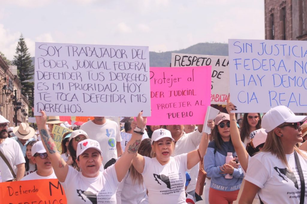 Redacción / La Voz de Michoacán México.- "No son privilegios, son nuestros derechos", alegaron trabajadores del Poder Judicial quienes marcharon en varios estados del país este domingo en protesta a la reforma para desaparecer 13 fideicomisos, impulsada por el presidente Andrés Manuel López Obrador. La movilización se realizó de manera simultánea en las diversas secciones del Sindicato Nacional de Trabajadores, a la que se le sumaron empleados de Morelia, que marcharon por la avenida Madero. En puntos como la Ciudad de México se vieron participando a personajes de la oposición como militantes del Partido Acción Nacional (PAN), el coordinador de los diputados del PRD, Luis Espinosa Cházaro y la alcaldesa de Cuauhtémoc, Sandra Cuevas; además de el empresario Claudio X. González Guajardo. La eliminación de los instrumentos financieros, señalaron, afecta sus derechos labores, pues los recursos son usados para el pago complementario de pensiones y servicios médicos. El pasado 17 de octubre, la Cámara de Diputados aprobó una reforma a la Ley Orgánica del PJF en la que elimina 13 fideicomisos que contienen recursos por 15 mil millones de pesos. La minuta fue enviada al Senado para su análisis, discusión y en su caso, aprobación. Foto: Víctor Ramírez “Que les vaya muy bien en las protesta”: AMLO El Presidente Andrés Manuel López Obrador celebró la “rebelión” del Poder Judicial, que incluye un paro nacional al y una marcha para este domingo, pero insistió en que se trata de movilizaciones para defender privilegios. “Les deseo que les vaya muy bien en las protesta del Poder Judicial. Estamos viviendo tiempos interesantes… ¡Cuándo se había visto una rebelión del Poder Judicial en contra del Poder Ejecutivo? Nunca. Era el Ejecutivo el poder de los poderes. Los ministros, todos subordinados, toda la Corte”, dijo desde Palacio Nacional en su conferencia matutina. Además dijo que ojala quienes marchen sean los ministros: “A mí me gustaría hasta ahora que van a hacer manifestaciones que marchen ellos, los ministros. Que defiendan sus privilegios. Fuera máscaras, además sirve que les da el sol”, dijo.