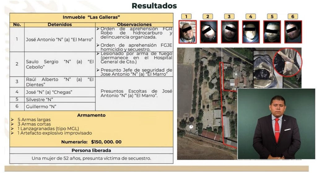 El mando militar señaló que más de mil hombres participaron en el operativo y a las 3:45 lograron la detención del líder de Santa Rosa de Lima y a las 5:00 horas fue puesto a disposición de autoridades.
