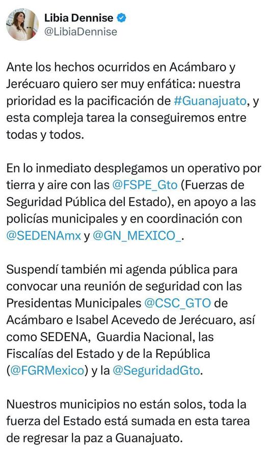 Redacción / La Voz de Michoacán Un coche bomba estalló esta mañana, a las 06:15 horas, frente a la Secretaría de Seguridad en Acámbaro, Guanajuato, lo que dejó tres policías lesionados, una agente con lesiones graves, 4 casas aledañas con daños y 7 vehículos afectados. Sin embargo, poco después de las 09:30 horas se registró otro ataque con un artefacto también en el municipio de Jerécuaro. Luego del hecho y durante su conferencia de prensa matutina, la presidenta Claudia Sheinbaum habló sobre lo ocurrido. La mandataria informó que la explosión de un coche bomba se trató en el Gabinete de Seguridad en Acámbaro, Guanajuato, por lo que ya se investiga por parte de la Fiscalía General de la República (FGR). “Se informó en el gabinete de seguridad y está en el proceso de investigación, la información (llegó) y de inmediato el gabinete toma el hecho y va investigar y la FGR”, aseveró la presidenta durante la conferencia Mañanera. Por su parte, la gobernadora de Guanajuato, Libia Dennise García Muñoz Ledo, emitió un comunicado sobre lo ocurrido en Acámbaro y Jerécuaro. “Ante los hechos ocurridos en Acámbaro y Jerécuaro, quiero ser muy enfática: nuestra prioridad es la pacificación de Guanajuato, y esta compleja tarea la conseguiremos entre todas y todos. En lo inmediato desplegamos un operativo por tierra y aire con las Fuerzas de Seguridad Pública del Estado, en apoyo a las policías municipales y en coordinación con la Secretaría de la Defensa Nacional (Sedena) y la Guardia Nacional". La mandataria suspendió también su agenda pública para convocar a una reunión de seguridad con las presidentas municipales de Acámbaro, Claudia Silva, e Isabel Acevedo de Jerécuaro, así como Sedena, Guardia Nacional, las Fiscalías del Estado y de la República, así como de la Secretaría de Seguridad de Guanajuato. Apenas la mañana de este lunes 21 de octubre, la Policía Municipal repelió una agresión armada en el libramiento Sur de Acámbaro, asegurando a tres hombres que intentaron huir tras abandonar una camioneta con reporte de robo. En el operativo, en el que también participaron la Guardia Nacional, Policía Estatal y Ejército Mexicano, se confiscó armamento, equipo táctico y drogas. Los detenidos, de 17, 18 y 19 años, fueron capturados entre los sembradíos tras enfrentarse a los oficiales. Uno de ellos resultó herido de bala en la mano, aunque se encuentra estable. Entre los objetos asegurados había dos fusiles AR-15, chalecos balísticos, municiones y 12 bolsas con una sustancia similar al cristal. Ejecutan tres policías en Celaya Tres policías municipales, exfederales en proceso de despido, fueron ejecutados al interior de un bar a manos de un grupo armado en la avenida 12 de octubre. Apenas el martes la presidenta Claudia Sheinbaum y la gobernadora Libia García se reunieron en el gabinete de seguridad y anunciaron acciones para pacificar el estado y dentro de los municipios prioritarios fue señalado Celaya. El ataque a los tres policías conocidos como Fedepales se registró minutos después de las seis de la tarde en el bar denominado “MicheLTS” en la avenida 12 de Octubre de la colonia Nuevo Celaya, donde se encontraban conviviendo. Vecinos alertaron al sistema de emergencias 911 donde reportaban un tiroteo y minutos después arribaron agentes de las Fuerzas de Seguridad Pública del Estado y de la Guardia Nacional, además de paramédicos. Al llegar, observaron en una mesa cercana a la puerta de acceso a tres hombres y una mujer con visibles heridas de bala. Paramédicos de Cruz Roja revisaron de inmediato a las víctimas y determinaron que uno de los hombres ya no contaba con signos vitales. Los sobrevivientes fueron trasladados a un hospital en donde dos de ellos fallecieron cuando eran atendidos en tanto la mujer era reportada como grave. Los agentes aún forman parte de la nómina municipal y estaban fuera de servicio, en días pasados el alcalde morenista Juan Miguel Ramírez aseguró que 170 agentes policiacos Fedepales serían dados de baja aunque aún están en proceso. La Fiscalía General del Estado levantó evidencias e inició la integración de una averiguación previa. Con estos tres asesinatos ya son 49 los policías caídos en Guanajuato en lo que va del año y 27 en Celaya. Coches bomba en México y los atentados del narco El antecedente más reciente, de un coche bomba previo a lo ocurrido hoy, jueves 24 de octubre en Acámbaro, es de apenas el año pasado, también en Guanajuato, cuando el 29 de junio de 2023, un dispositivo instalado al interior de un vehículo detonó en Celaya, en donde dejó heridos a 10 elementos de la Guardia Nacional. Durante el sexenio de Felipe Calderón, en 2010, otro coche bomba detonó el 15 de julio en Ciudad Juárez, año en que la guerra contra el narcotráfico se encontraba en un punto álgido. El artefacto dejó cuatro muertos, entre quienes se encontraba un policía federal, dos personas no identificadas y el doctor Guillermo Ortiz, quien acudió a brindar auxilio a un herido. Cinco jóvenes fueron detenidos y torturados para autoincriminarse, lo cual fue duramente criticado por organizaciones de la sociedad civil, aunque esto tardó algunos días en ser revelado. Sin embargo, el primer coche bomba del que se tiene registro ocurrió en el hotel Camino Real en 1994 en Guadalajara, Jalisco, en medio de una guerra entre el cártel de Tijuana, a cargo de los hermanos Arellano Félix, y el de Sinaloa, que en ese momento estaba a cargo de Joaquín "El Chapo" Guzmán e Ismael "El Mayo" Zambada.