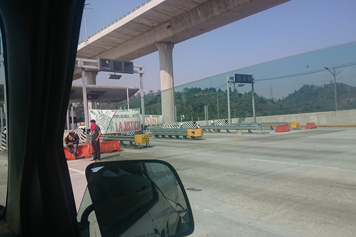 El Universal/La Voz de Michoacán Ciudad de México. Padres de los 43 normalistas víctimas de desaparición forzada de Ayotzinapa tomaron la caseta México-Cuernavaca y permitieron el libre paso a los automovilistas. Después de repartir volantes, los familiares y simpatizantes pidieron una cooperación voluntaria de 50 pesos. Estos manifestantes se encuentran en este punto desde las 10:30 horas y llegaron abordo de cinco camiones desde Tixtla, Guerrero. María Martínez, madre de Miguel Hernández, dijo que esta es una de las acciones que realizan para continuar en la búsqueda de sus hijos, pues con el dinero cubren algunos gastos. En las inmediaciones hay al menos 10 policías federales que resguardan la zona. Mediante su cuenta de Twitter, la Policía Federal reportó la presencia de habitantes que bloqueaban la carretera México-Cuernavaca, a la altura de la caseta de cobro de Tlalpan, por lo que pidió a los automovilistas atender las indicaciones viales.