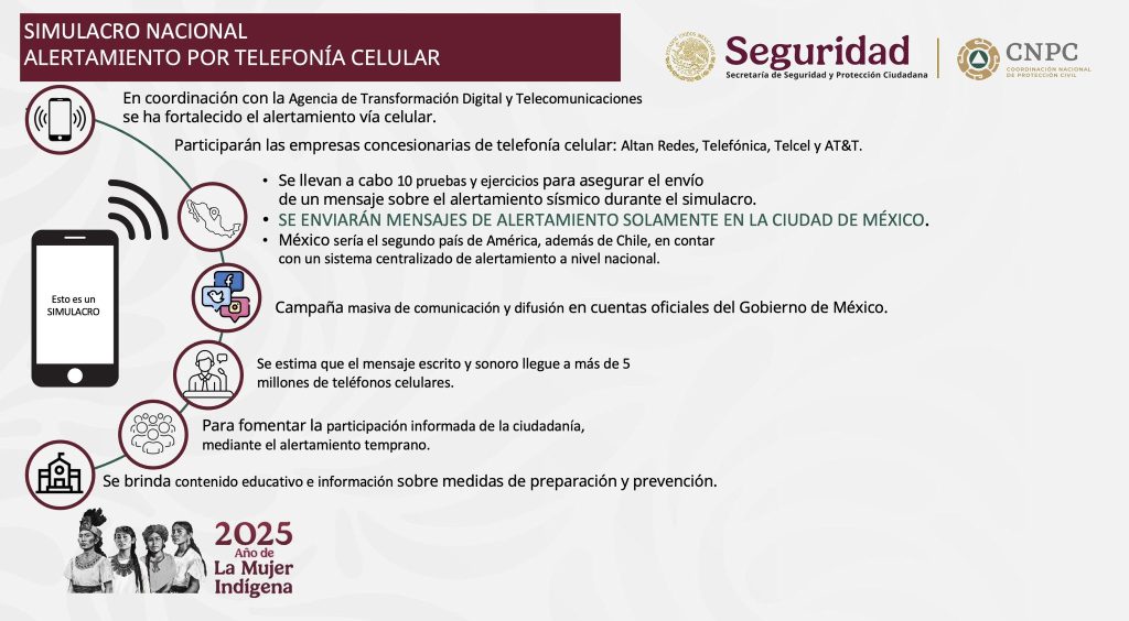 Redacción / La Voz de Michoacán Morelia, Michoacán. El próximo martes 29 de abril, a las 11:30 horas, se llevará a cabo el Primer Simulacro Nacional 2025, que tiene como objetivo concientizar a la población sobre los riesgos circundantes; fortalecer las capacidades de preparación respuesta de las autoridades; la difusión de la cultura e la protección civil y el fortalecimiento de la autoprotección. Laura Velázquez Alzúa, coordinadora nacional de Protección Civil, dio a conocer este viernes que se planteará como hipótesis un sismo de magnitud 8.1, con una profundidad de 40.1 kilómetros y epicentro en el Golfo de Tehuantepec; además, se planteará una posible alerta de tsunami en el Pacífico. Velázquez Alzúa detalló que se activará la alerta sísmica en 11 estados mediante 14 mil altavoces, radio, televisión y telefonía celular, y habrá una alerta pública en la Ciudad de México, Estado de México, Guerrero, Morelos, Puebla, Jalisco, Colima, Michoacán, Oaxaca y Chiapas. Este simulacro contempla una intensidad severa para los estados de Oaxaca y Chiapas; fuerte a muy fuerte en Tabasco, Veracruz, Puebla, Ciudad de México, Estado de México y Guerrero; moderada en Campeche, Morelos, Tlaxcala y Michoacán. Como posibles daños en viviendas, infraestructura, edificios históricos, instalaciones estratégicas y líneas vitales, en Oaxaca, Chiapas, Tabasco, Veracruz, Guerrero, Puebla y Ciudad de México. Además, la Secretaría de Marina realizará simultáneamente un ejercicio (simulacro) de Alerta de Tsunami en el océano Pacífico, a fin de examinar los procedimientos y protocolos de respuesta ante la posible llegada de un fenómeno como éste. Laura Velázquez agregó que en este ejercicio participan el Gobierno de México, los gobierno estatales y municipales; los sectores social y privado, y las familias.