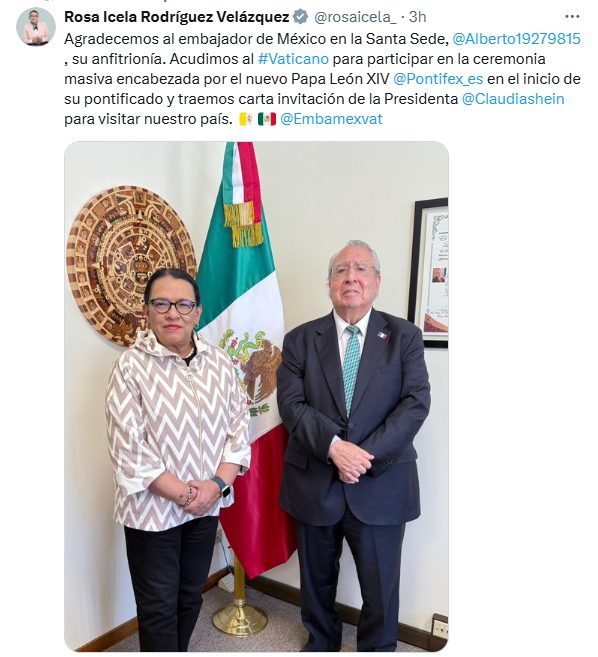 EFE / La Voz de Michoacán Ciudad de México. La secretaria (ministra) de Gobernación de México, Rosa Icela Rodríguez Velázquez, informó este sábado que ya se encuentra en el Vaticano, con el objetivo de entregar la carta que envió la presidenta, Claudia Sheinbaum, en la que invita al papa León XIV a visitar el país. La visita de la funcionaria mexicana se enmarca en la misa de inicio de pontificado del papa León XIV. Rodríguez también agradeció al embajador de México ante la Santa Sede, Alberto Barranco Chavarría, por su anfitrionía durante la visita y destacó la importancia del encuentro. “Agradecemos al embajador de México en la Santa Sede, Alberto Barranco Chavarría, su anfitrionía. Acudimos al #Vaticano para participar en la ceremonia masiva encabezada por el nuevo Papa León XIV en el inicio de su pontificado y traemos carta invitación de la Presidenta Claudia Sheinbaum para visitar nuestro país”, expresó la funcionaria a través de sus redes sociales. El viaje de Rodríguez al Vaticano fue anunciado previamente por la presidenta Sheinbaum, quien confirmó que la secretaria de Gobernación sería la encargada de entregar la invitación formal al pontífice, con la esperanza de que León XIV pueda visitar México en una fecha que considere adecuada. “Va a ir la secretaria de Gobernación, de ahí vamos a entregar una carta al Vaticano, si lo puede ver (al papa) personalmente muy bien y si no de todas maneras se va a entregar una carta para invitarlo a venir a México ya en la fecha que él considere oportuno", explicó Sheinbaum en una conferencia de prensa el 12 de mayo. A la ceremonia de inicio de pontificado, este 18 de mayo, se espera que acudan de jefes de Estado y representantes de gobiernos de todo el mundo. El pasado 8 de mayo, el cardenal estadounidense Robert Prevost fue elegido como nuevo pontífice bajo el nombre de León XIV, sucediendo al papa Francisco. En el cónclave que definió al nuevo líder participaron dos cardenales mexicanos, el arzobispo de Guadalajara, Francisco Robles Ortega, y el arzobispo primado de México, Carlos Aguiar Retes. México, con unos 111 millones de católicos, es el segundo país con más fieles en el mundo, solo superado por Brasil, que cuenta con unos 170 millones de católicos.