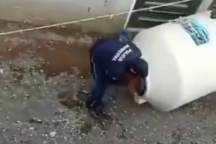 A través de las redes sociales, se observa como elementos de la policía ingresan al domicilio y sacan a la niña del tinaco.