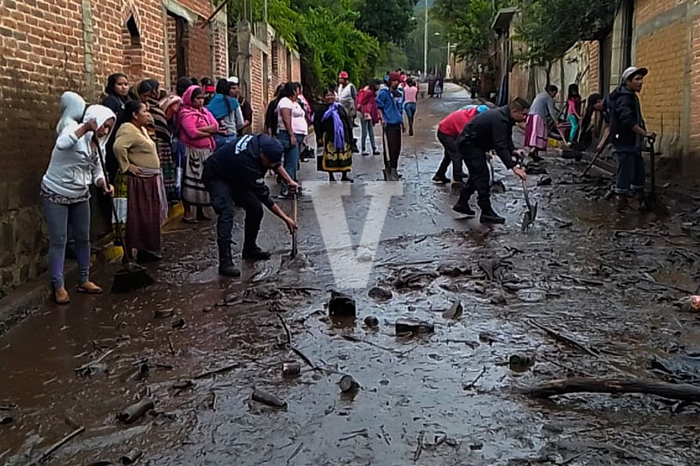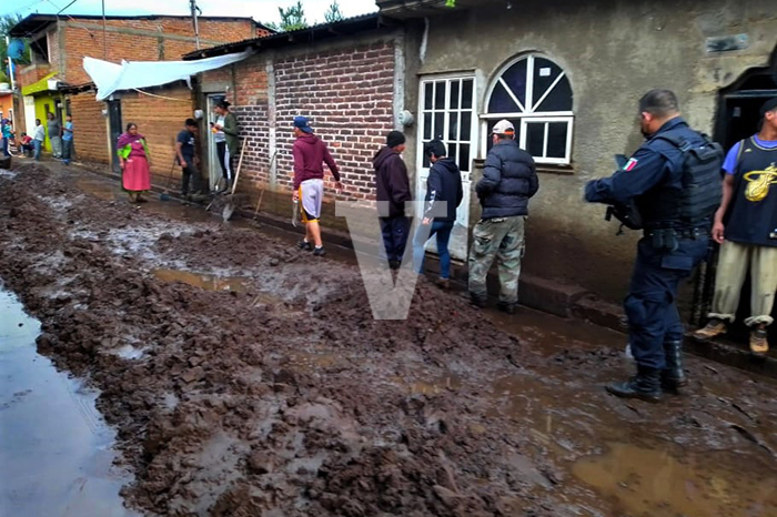 Redacción / La Voz de Michoacán Chilchota, Michoacán. Las calles se llenaron de agua y lodo, además de que varias viviendas se inundaron, luego de que una parte del cerro del Cobre se deslavara y arrastrara todo a su paso, a causa de una fuerte tromba la tarde del sábado; una barranca que pasa por esta comunidad, se desbordó por la corriente de agua y una familia fue arrastrada, pero fueron rescatados. Por lo que las autoridades ya atienden la zona afectada. Esta población se ubica en la Cañada de los Once Pueblos y forma parte de las cuatro regiones de la Nación Purhépecha, Tukuru, de la lengua originaria, significa tecolote, y sus habitantes vivieron una tarde de terror, tras fuerte lluvia que azotó la tarde y parte de la noche del sábado anterior, en la parte alta del cerro del Cobre, ubicado al norte de la población y que ocasionó se deslavara, se presume que a causa de la desforestación. Agua, lodo, ramas, piedras y troncos llegaron hasta las calles de Tacuro, varias casas se inundaron, ocupantes de muchas de ellas tuvieron que ser auxiliados para ponerlos a salvo; un matrimonio y sus dos hijos fueron arrastrados por la corriente; el papá y los niños, fueron rescatados a tiempo, pero la joven mujer, con 8 meses de embarazo, fue hasta varios metros abajo, dentro de una barranca, posteriormente fue hospitalizada. Poco antes del anochecer, la presidenta municipal, Álfega Rivera Alejo y varios funcionarios municipales, recorrieron la zona del desastre; se instaló un refugio temporal y centro de acopio para ayuda, en el auditorio del lugar. Camiones de volteo, palas y una retroexcavadora, fueron el apoyo para iniciar las labores de limpieza y hacer un recuento de los daños y damnificados, acción que aún continuaba hasta este domingo. Por la noche del sábado, arribaron elementos de la Guardia Nacional, que implementaron el Plan GN-A, de asistencia a la sociedad en caso de emergencia, que se coordinaron con los propios habitantes, el jefe de tenencia, Armando L. Camilo, la presidencia municipal que encabeza Álfega Rivera Alejo, así como de elementos de la Policía Municipal.
