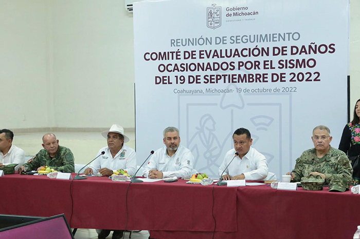 Redacción / La Voz de Michoacán Coahuayana, Michoacán. El gobernador Alfredo Ramírez Bedolla encabezó la reunión del Comité de Evaluación de Daños ocasionados por el sismo del pasado 19 de septiembre, donde informó que en noviembre inicia el proceso de reconstrucción de 463 viviendas con pérdida total. Dichas propiedades forman parte de las 5 mil 287 censadas en Coalcomán, Aquila, Coahuayana y Chinicuila, que siguen en proceso de validación, tras mencionar el mandatario que la federación concedió una prórroga hasta el 11 de noviembre para continuar con el levantamiento de expedientes de infraestructura de vivienda, carretera, de salud y de educación, en coordinación con los municipios. Foto: Cortesía Ramírez Bedolla destacó el trabajo permanente entre los tres niveles de gobierno y señaló que es necesario generar un plan emergente para Coahuayana y Aquila que son las zonas más afectadas por el sismo. Roberto Andrade Fernández, director general del Instituto de Vivienda del Estado de Michoacán (IVEM), agregó que también se han entregado más de 23 mil láminas a familias damnificadas de los cuatro municipios de la región Sierra-Costa, así como dotaciones alimentarias, colchones y colchonetas. Con respecto a la infraestructura educativa, se contabilizaron 243 instituciones de nivel básico, medio superior y superior con daños moderados o graves, de las cuales, 26 se reportaron en Coalcomán, 61 en Coahuayana, 19 en Chinicuila, 57 en Aquila y 79 en Apatzingán. El titular de la Secretaría de Comunicaciones y Obras Públicas, José Zavala Nolasco, agregó que para reparar afectaciones de tan solo 55 escuelas siniestradas conforme a los lineamientos, se requiere una inversión de 92 millones de pesos a beneficio de 7 mil 913 alumnos. Además de que fueron 33 caminos dañados por el sismo, y de estos, ocho cumplieron con los lineamientos de atención urgente y prioritaria para su rehabilitación en coordinación estado-federación. El secretario de Salud, Elías Ibarra Torres, refirió que son tres las unidades médicas con daños mayores (Hospital de Maruata y el Centro de Salud Aquila donde se propone su sustitución, y el Hospital General de Apatzingán para rehabilitación); además 11 nosocomios tienen afectaciones menores, por lo que comentó que se autorizó una prórroga para continuar con la evaluación y subir a la plataforma el anteproyecto con la Secretaría de Salud federal. Carolina Rangel, secretaria del Bienestar, comentó que son más de 2 mil familias beneficiadas a través de acciones del programa Barrio Bienestar y a las que se les han entregado láminas, cobijas, colchonetas, dotaciones alimentarias, kits escolares, entre otros. Participaron en la reunión el secretario de Gobierno, Carlos Torres Piña; el de Turismo del estado, Roberto Monroy García; el secretario de Medio Ambiente, Alejandro Méndez; el director general de Cofom, Rosendo Gómez, el encargado de despacho de Sedeco, Rubén Medina, el vocal ejecutivo de Cedemun, Jesús Mora, así como representantes de SCT, Sedatu, Sedena, entre otros.