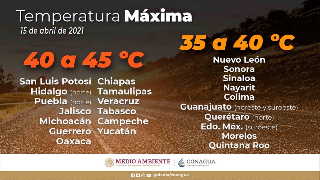 En este sentido, las condiciones climáticas para las próximas horas no tendrán variación y se podrían registrar temperaturas superiores a los 40 grados Celsius en zonas de la Tierra Caliente y Costa y hasta de 30 grados en el centro y la capital del estado.