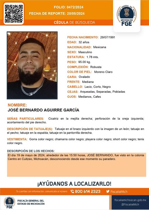 Redacción / La Voz de Michoacán Morelia, Michoacán. El candidato a la presidencia municipal de Cuitzeo, Fernando Alvarado Rangel, presentó una solicitud formal a la Comisión Estatal de Búsqueda para solicitar su intervención en el caso de la desaparición de uno de sus colaboradores de campaña. José Bernardo Aguirre García desapareció hace una semana y fue visto por última ocasión en la colonia Centro en el municipio de Cuitzeo el pasado domingo 19 de mayo en punto de las 15:50 horas. El hombre había estado en un evento deportivo, donde dio a conocer a las personas con las que se encontraba que iba de regreso a su casa. Sin embargo, este no llegó a su domicilio. El candidato del Partido Acción Nacional (PAN) exigió la participación activa y el seguimiento de los protocolos de búsqueda por parte de la comisión, debido a que sus compañeros y sus familiares temen por su seguridad. Durante la forma del documento, el candidato reiteró el llamado emitido al gobernador de Michoacán, Alfredo Ramírez Bedolla, exigiéndole que se atiendan los llamados que se han hecho hacia su administración. Foto: Samuel Herrera Jr. Detalló que la Unidad Antisecuestros de la Fiscalía General del Estado (FGE) había iniciado una investigación al respecto debido a un par de llamadas, pero que hasta el momento no han obtenido resultados.