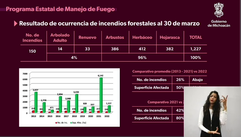 De acuerdo a las estadísticas, se ha registrado un 42 por ciento menos de incendios con respecto al 2021 y se han afectado el 80 por ciento menos de la superficie y la mayor parte de la superficie afectada no ha dañado a arbolado adulto.