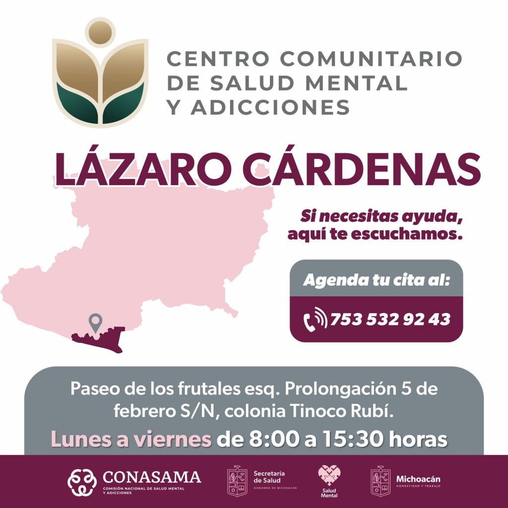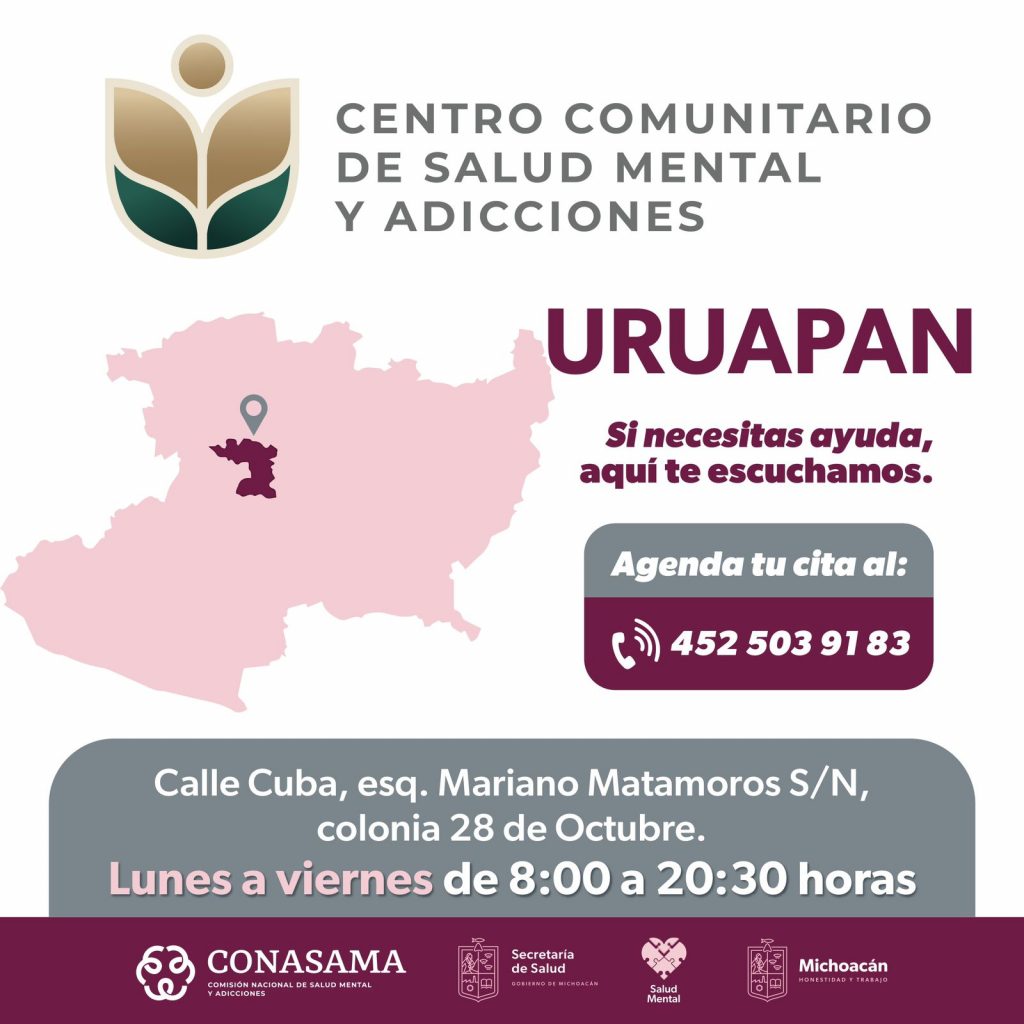 Redacción / La Voz de Michoacán Morelia, Michoacán.- Comprometidos con la salud de la población, el Gobierno de Michoacán implementa acciones de atención y prevención de adicciones en los jóvenes, con servicios gratuitos en cuatro centros comunitarios en salud mental, ubicados en los municipios de Uruapan, Morelia, Zitácuaro y Lázaro Cárdenas. En estos Centros Comunitarios de Salud Mental y Adicciones (Cecosama), la Secretaría de Salud de Michoacán (SSM) a través de la Dirección de Salud Mental atiende a adolescente y jóvenes con algún tipo de dependencia a sustancias nocivas, y trata de manera gratuita trastornos de ansiedad y depresión. Consulta psicológica y médica, terapia de rehabilitación grupal e individual, actividades recreativas y talleres sobre la prevención del suicidio y los efectos nocivos de las drogas, son algunos de los servicios con los que cuentan estas unidades que operan de lunes a viernes en horarios de 08:00 a 15:30 horas en Lázaro Cárdenas y Zitácuaro, mientras que en Uruapan de 08:00 a 20:30 horas y en Morelia de 08:00 a 19:30 horas. Para recibir atención, es necesario presentar copia de alguna identificación oficial o la CURP si se es menor de edad, así como las cartas de no derechohabiencia a los institutos Mexicano del Seguro Social (IMSS) y de Seguridad y Servicios Sociales de los Trabajadores del Estado (ISSSTE) que se pueden descargar de los siguientes links, bit.ly/3K85R3o y bit.ly/43FrDlI. En la primera cita, un especialista aplicará algunas pruebas para identificar si existe consumo de drogas o trastornos de salud mental, para determinar el tratamiento correspondiente. También se brinda acompañamiento a padres y madres de familia para que apoyen a sus familiares durante el proceso de recuperación. En estas cuatro unidades, la SSM atiende a mil 031 pacientes mediante consultas médicas, terapias psicológicas y tratamiento; para agendar una cita o solicitar información, pueden llamar a los teléfonos 753 532 9243 en Lázaro Cárdenas, 443 314 0419 en Morelia, 452 503 9183 en Uruapan y 715 153 6060 en Zitácuaro.