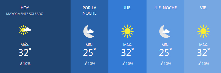Ambiente caluroso durante el día y viento del este y noreste de 10 a 25 km/h.