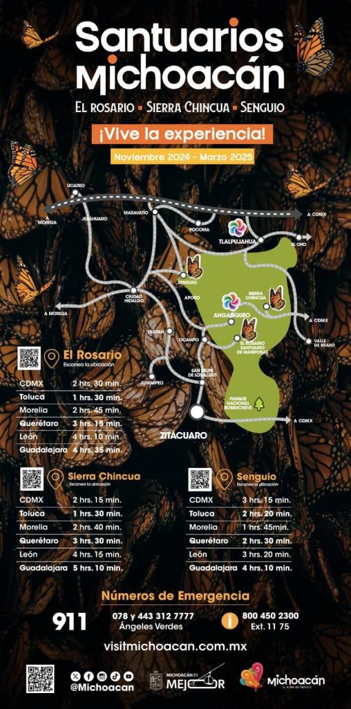 También se encuentra la página de internet, www.visitmichoacan.com.mx, donde el turista y visitante que ingrese podrá encontrar información respecto a la temporada noviembre 2024-marzo 2025, de esta migración que llega a “el Alma de México”.