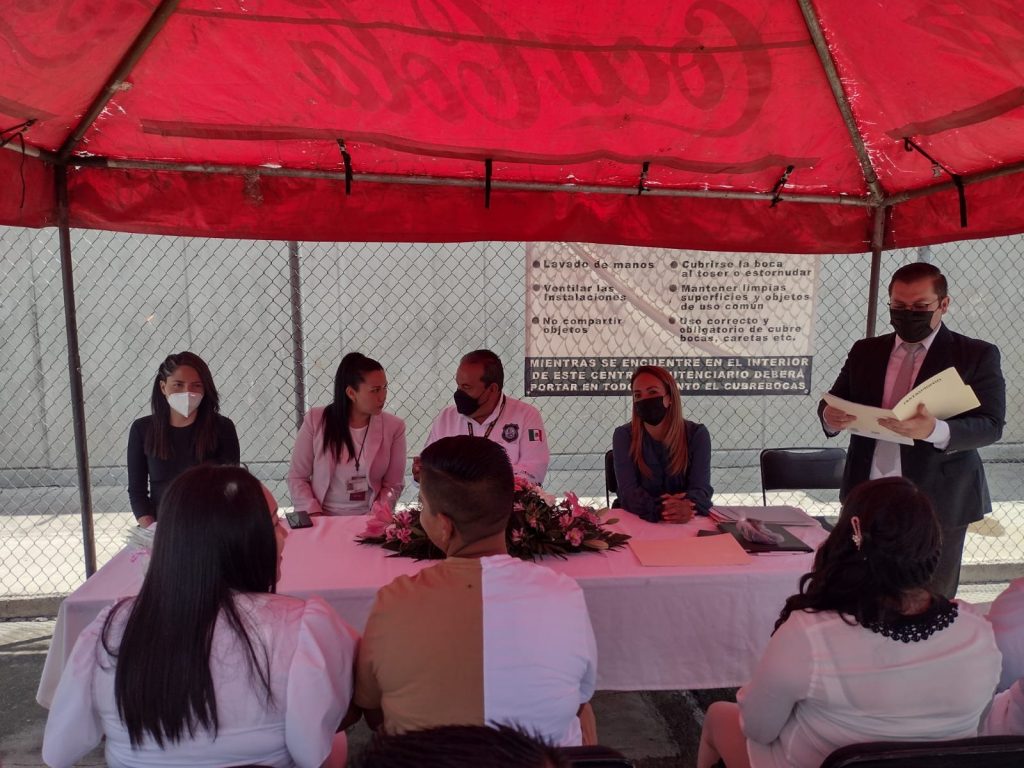 Redacción / La Voz de Michoacán Morelia, Michoacán.- La Secretaría de Gobierno a través de la Coordinación del Sistema Penitenciario y la dirección del Registro Civil apoyó en la consolidación de matrimonios entre internas e internos del Penal de Zamora. Se detalló que fueron 8 parejas que contrajeron nupcias en las instalaciones del penal: Eduardo y Rosa: Francisco y Fátima; José y Teresa; Eduardo y María; Rodolfo y Karen; Raúl y Rosa; Jorge y Cecilia y Jessica y Karla; estas últimas ejerciendo su derecho de matrimonio igualitario. Se trató de una ceremonia conjunta en compañía de familiares de los internos. Garantizamos el derecho a la identidad de las personas privadas de su libertad en el centro penitenciario de Zamora, en conjunto con el Sistema Penitenciario llevamos a cabo ocho matrimonios, dos registros de nacimiento y un matrimonio igualitario”, informó el Registro Civil del Estado.